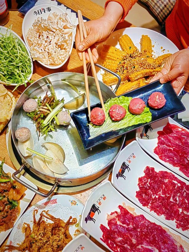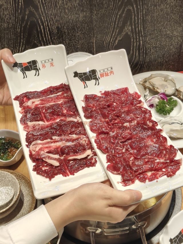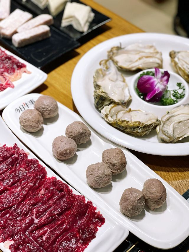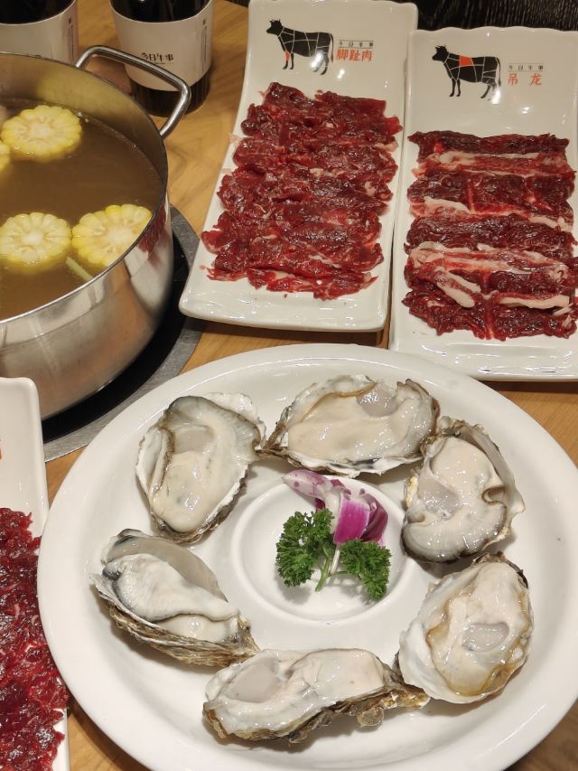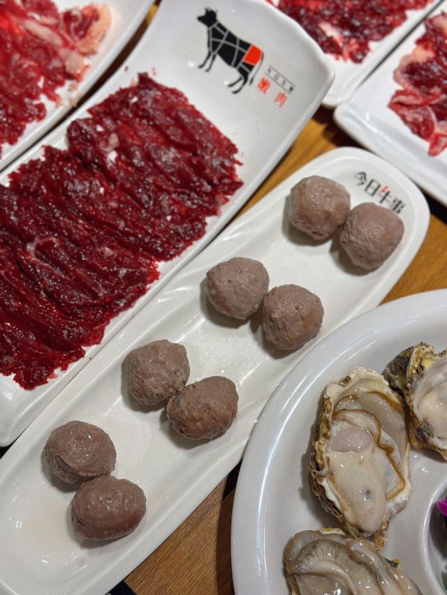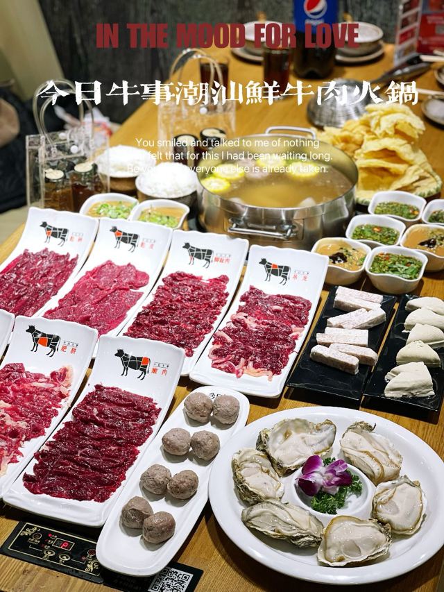 YoYo_1J9L3T0B谁懂啊?我真的很爱吃潮汕牛肉火锅 我对潮汕牛肉火锅真的是百吃不腻,牛肉都是蛮新鲜现切的,品质真的超级在,💢来今日牛事潮汕鲜牛肉火锅店聚会真是再好不过了呢。 🔥潮汕凉茶 吃潮汕火锅必不可少,凉茶!🥤用多种中草药熬制而成的,喝上一口,新鲜爽口,蛮生津止渴。 🔥匙皮 牛肉超大一块,口感超好的!💗肥瘦相间,略带有点韧劲儿,现切的有一定的厚度,入口极佳。 🔥匙柄 肉肉很是结实,🍥肉中间还穿插着细筋,非常鲜嫩,入口柔软又超弹,很有拉伸感。 🔥生蚝 不得不说这生蚝品质可以的!🌊鲜香的汤头是考验食材的新鲜度,这份新鲜肥美的生蚝🐚值得一吃。 🔥嫩肉 嫩肉还真和名字一样,🥢吃起来格外鲜嫩呢,一口一口吃到停不下来! 一进店门就能被温馨的氛围🏠所包围,环境干净,这家店的服务也非常周到呢,重点还得是吃些牛肉🥩,回味无穷。
