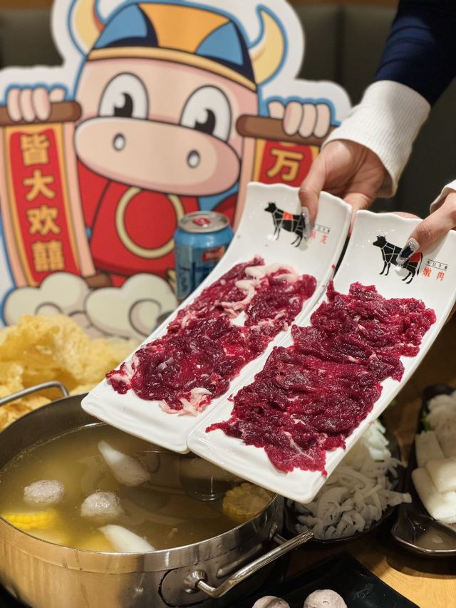 🐰ིྀྀིྀི可可兔Coco🐮牛肉控们❗️健身党蕞爱的正宗潮汕牛肉火锅 牛肉控们❗️健身党蕞爱的这家正宗潮汕牛肉火锅,在魔都有多家门店,一直都人气高🉐️不得了~ 这里的牛肉现点现切不过夜,新鲜可以挂盘,还能看到师傅切肉肉的样子。特别安心❗️ ▪️▪️▪️▪️▪️▪️▪️▪️▪️▪️▪️▪️▪️ 【🐮🌈牛事招牌锅】: 慢火熬制的汤头,撒上香芹来一碗真是鲜美可口。👍暖心暖胃,锅底里还有大块的牛腩、招牌的牛肉丸、玉米🌽等…涮什么都好吃😋。 【🐮🌈吊龙】: 很受欢迎的吊龙也是一定要点的高人气菜品。属于牛的里脊肉,脂肪少鲜嫩多汁。红白色的鲜艳色泽一看就很新鲜~在汤锅里涮一涮变色就可食用,肉香四溢。作为牛肉控,一碟都不够~😍赶紧再加一碟。 【🐮🌈嫩肉】: 牛身上特别嫩的部位,很适合喜欢细嫩口感的宝子们。口感特别好,一次就会爱上。 ▪️▪️▪️▪️▪️▪️▪️▪️▪️▪️▪️▪️▪️ 今日牛事真是一如既往的新鲜味美,百吃不厌。 现在8⃣️周年还有活动,真的是好吃又实惠❗️😍 ▪️▪️▪️▪️▪️▪️▪️▪️▪️▪️▪️▪️▪️ 今日牛事潮汕鲜牛肉火锅(静安寺店) 📍胶州路709号