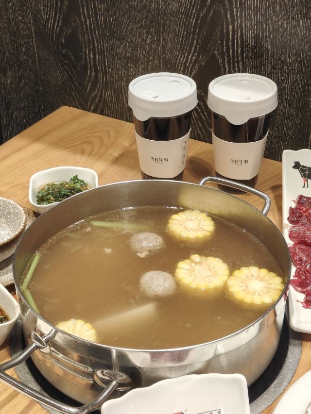 YoYo_2Q0V2O4U还是得吃今日牛事火锅!肉肉吃着更安心! 最近跟朋友都好想吃潮汕火锅 ,下班后又一起来 了,之前吃过觉得很不错的今日牛事这家。出地铁站之后步行两分钟就能到,非常方便,而且虽然是工作日,生意也很火爆,基本上都坐满了! 店里整个装修风格,尤其是顶上的灯笼和墙上的装饰,让人感觉好像真的到了潮汕氛围。 我们选了清汤锅底,里面有甜玉米 、苦瓜和芹菜,沸腾后香气四溢,配上芹菜粒之后,迫不及待地喝了一口,特别清新爽。吊龙和牛嫩肉都是涮8-10秒就能吃,不管是在盘子里随便转和倒过来都纹丝不动,非常新鲜。 他家的潮汕炸豆皮分量也很大,满满一大盘平铺着,吸满了汤汁之后豆香十足,!蔬菜拼盘种类很丰富,有娃娃菜、油麦菜、蒿子秆和生菜,清爽可口。手擀面细腻爽滑,特别筋道。 自助小料也很丰富,包括沙茶酱、麻酱、海鲜汁和各种辣酱等十几种配料,还有童年回忆的小零食和金桔,都可以随意自取,店里也给了几种经典搭配,对选择恐惧症患者太友好了!超值双人餐真的很划算,值得冲! 店名:今日牛事潮汕鲜牛肉火锅(静安寺店) 地址:胶州路709号