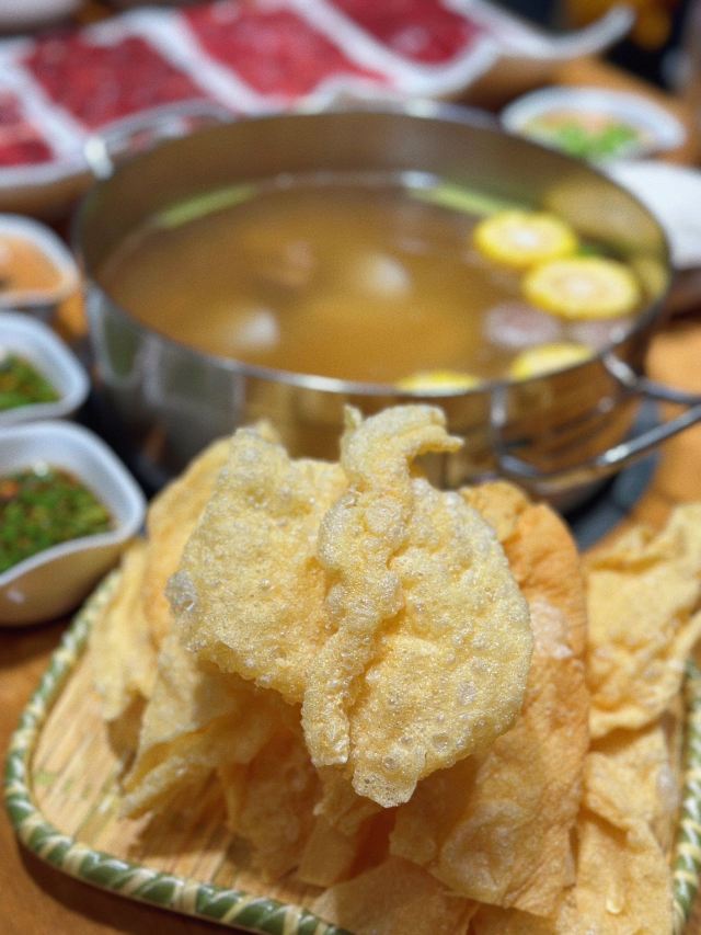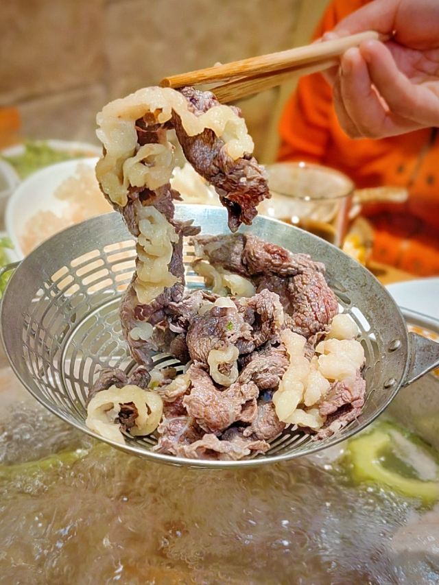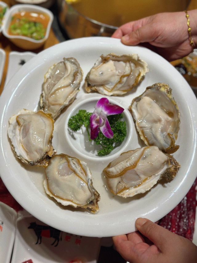 Iris白白子在上海也能体验到潮汕当地特色美食️ 牛肉火锅分量足且筋道‼️ 冬天吃完身子火热热的特别舒服🥰 🍲 ·生蚝 大海里现捞现做的海鲜就是鲜! 鲜鲜嫩嫩满满都是精华✨ 大海的味道这次狠狠的体验了一把! ·潮汕凉茶 店家就是潮汕本地的 吃完牛肉火锅就贴心的给我们准备了凉茶‼️ 有一股淡淡的草药味!温温热热的很舒润✨ ·嫩肉 是牛肉最嫩的一部分 每一头牛只有一点点精华部分可以作为嫩肉‼️ 可以试试沙茶酱加嫩肉‼️每一口都是满满的幸福 ·吊龙 也是牛肉火锅里的一道经典菜! 牛肉切得很薄 放在锅里几秒就能捞上来吃了✨ ·脚趾肉 首次尝试脚趾肉真的被征服了 没想到这么鲜嫩筋道‼️ 哈哈哈哈店员小姐姐悄悄告诉我冬天吃脚趾肉脚暖