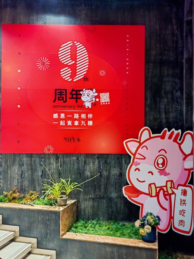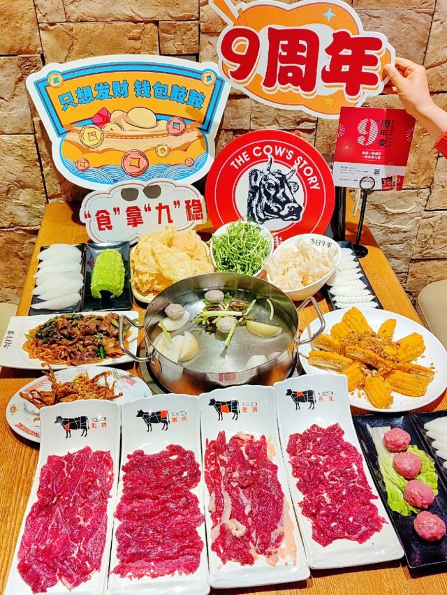 YoYo_6G4P8K1K今日牛事Ⅰ食拿九稳Ⅰ非你莫属 🐮涮牛肉我最爱吃潮汕的,还原牛肉最初的味道,清香且带有劲道。今日牛事有很多分店,公司附近静安寺就有一家,下班过来和同事搓一顿非常方便。店铺非常大,进门一个超大的铜牛雕塑特别帅气。 🍲牛事招牌锅 没想到价格这么优惠的锅底,里面有不少牛肉块,是那种大块的,不是片片的,还带有牛筋,太划算了吧!加上玉米萝卜调鲜,煮开后芹菜末加入一碗原汤,沁香扑鼻。 🥩嫩肉 每次必点,不但性价比高,主要是真的很嫩,牛事家的电磁炉威力也很大,10几秒便能享用美食啦!调料自选,有一款搭配好的香菜生抽很是不错,芝麻酱的浓度也是恰到好处。 🥰吊龙 带有一点点肥肉的牛肉,比例刚刚好,蘸一点芝麻酱,一口一大块好不过瘾。 🫓牛百叶 火锅最佳拍档,满满一大盆,分量那是相当的实在,七上八下就能吃啦!脆脆香香的就爱这一口。 🍛芥兰牛肉炒饭 伙伴们下班晚,过来都饿的肚子咕咕叫,上来一盘炒饭直接光盘,加入芥兰使得口感香脆,一致好评。 🎊这里的菜品都是新鲜看得见,竹荪个头那是相当大。今年是牛事九周年庆,只要进店消费就能参加抽奖,100%中奖福利哦!小伙伴们快冲呀! 🏡店名:今日牛事潮汕鲜牛肉火锅(静安寺店) 📍地址:胶州路709号