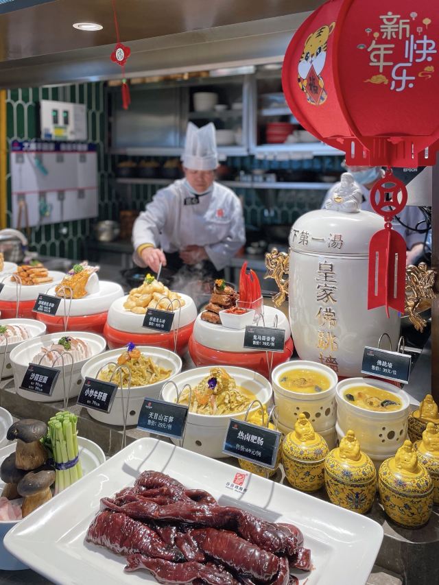 白切鸡,鲍鱼焖猪手,谷谷鸡,佛跳墙,椒盐牛蛙,家烧杂鲜,香港桥底龙头烤,上海生煎包,黑椒牛仔粒,青椒炒鱿鱼,稻草扎肉