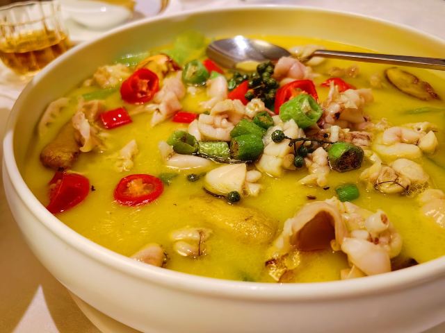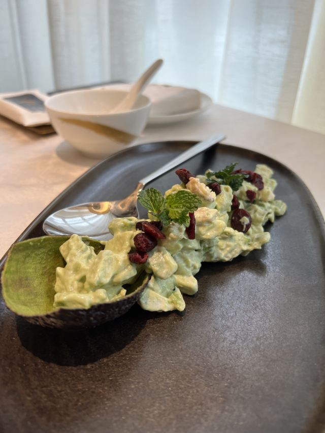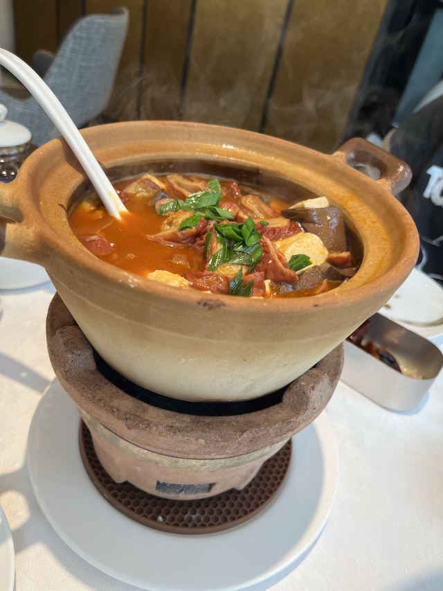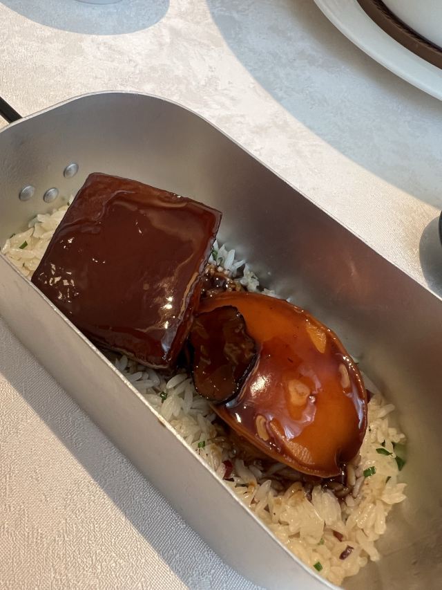 Randy需要提前预约,开车的需要提前报车牌号进去,到时候停复兴珑御,没错就是那个某明星住的。 到门口和保安说一声就可以了,有专门的访客停车区域,不过进电梯前还有一道门需要和安保中心连线让人开门,安全性很高。 环境: 上一楼出来就是他家,整个两层楼都是他家,大厅不算很大,装修大方典雅,人也不多。 服务: 预约很客气,提前告知车辆线路,点菜能全面回答问题,上菜能简单介绍下菜的原料、产地和工艺,看到我拍拍拍也能主动配合。 菜品 有套餐,不过我们没点,因为上次来吃几个特别好吃的不在套餐里面所以自己点了。 蟹肉牛油果沙律 用珍宝蟹和牛油果+芥末调治,爽口清新。 黑松露脆皮烤鸡 当面手撕上桌,采用了纳西族的烤制手法,加上猪肉糜和黑松露,皮脆肉嫩, 松露红烧鲍鱼酱肉 用了卜卜米(泰国香米)安徽土猪肉和大连六头鲍烧制,入味十分,肉酥软鲍鱼有弹性,口味和香味互补相得益彰。 砂锅肥肠臭豆腐煲 就是奔着这个来的,就是普通的家常菜,但是结合起来又是特别不一样,肥肠肥厚柔嫩,“臭上加臭”却给“食臭族”带来愉悦的感受,这个是负负得正吗?味道真的很香呀。 蛋白杏仁茶 采用帝王杏和蛋白制作,解油腻。 很棒的一次体验。