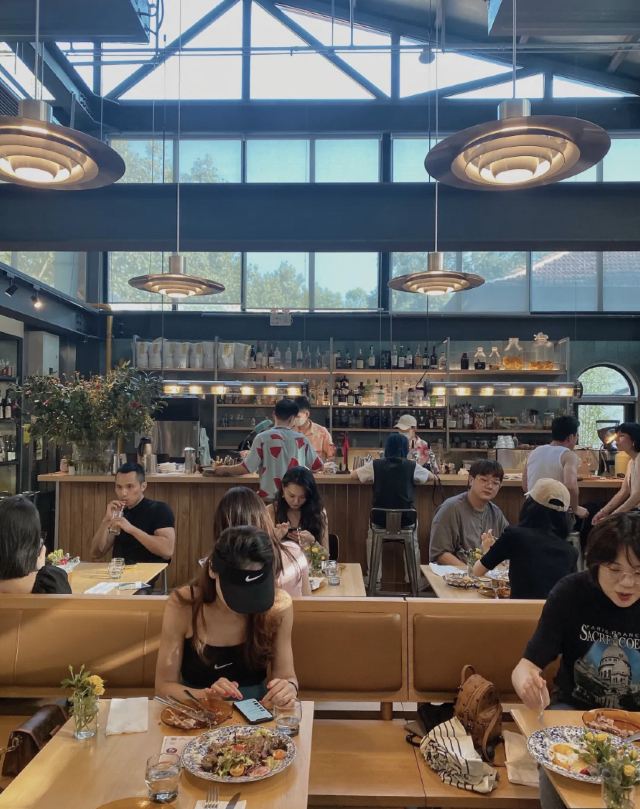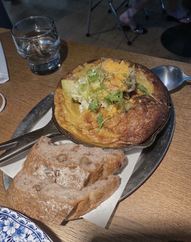 【上海美食】SOMETHING 最近经常刷到something,让我惦记了很久很久,终于来了这家绝美餐厅🍴 ✨✨✨环境: 在十分有品的武康路上,根据导航找到后要走上楼才是哦.举架很高配上大面积落地窗,整体环境十分明亮.而且光线很棒,大部分时间阳光会透过窗外的梧桐树叶落在某张餐桌上☀️ 🥗🥗🥗菜品: 「烤蟹煎蛋」之前看每篇分享中都推荐这道,然后果断入手,这道现烤要等20分钟左右,口感偏东南亚菜系,大面积都是煎蛋,整体没有很特别 「烤鸡」在等位的时候看到别人餐桌上的大鸡腿就深深i上了,这道硬菜现烤也需要等20分钟以上,不过如期待中一般美味,皮质酥脆入味,肉质鲜嫩🥩 这条路上开满了颜值店铺,距离武康大楼只有几百米的距离,也有很多买手店铺,超适合周末和闺蜜一起吃吃喝喝逛逛GAI🚲