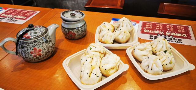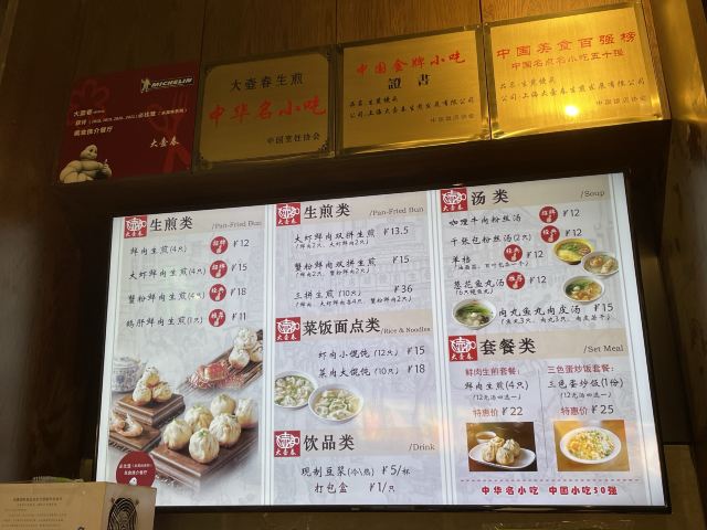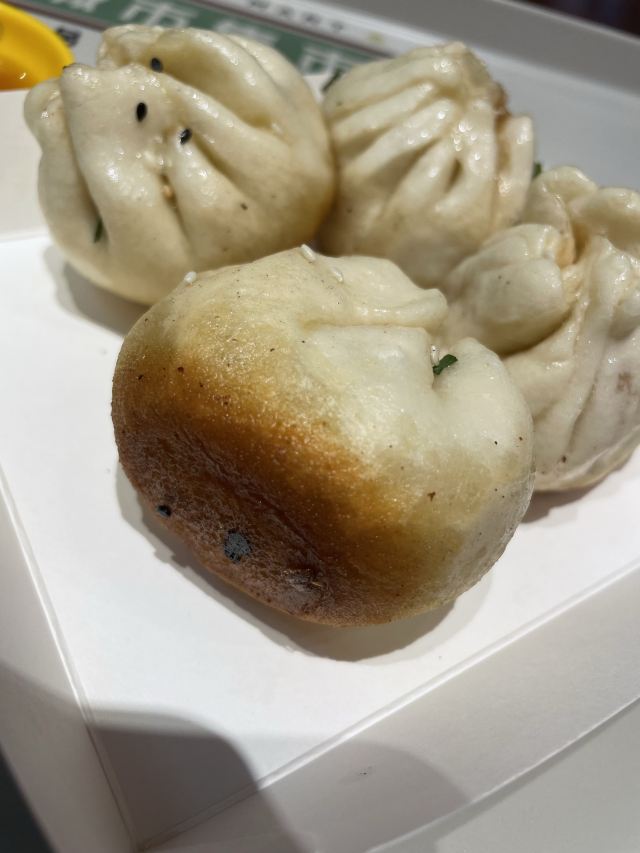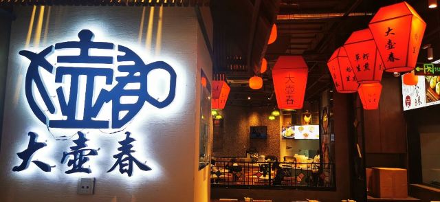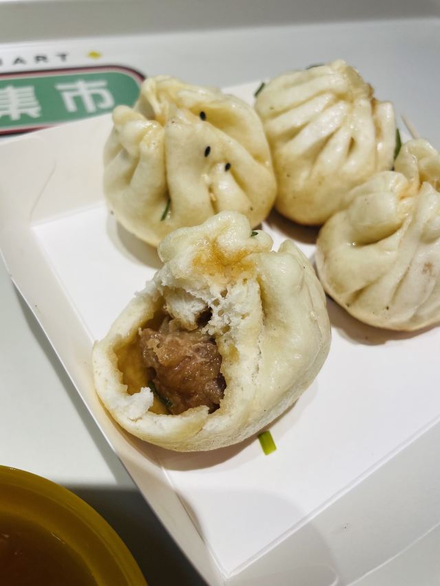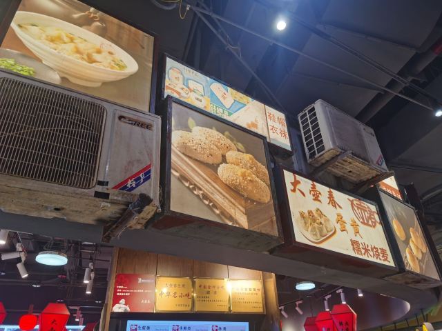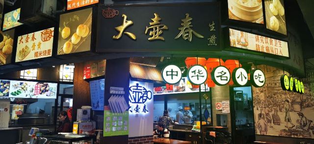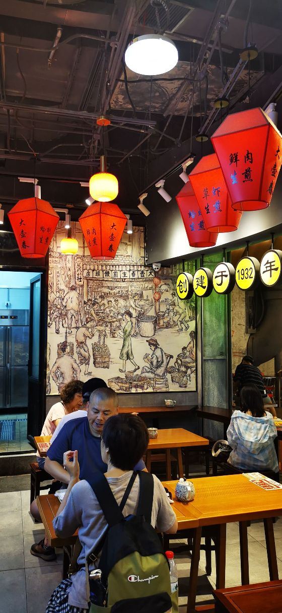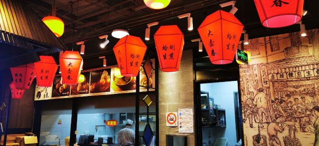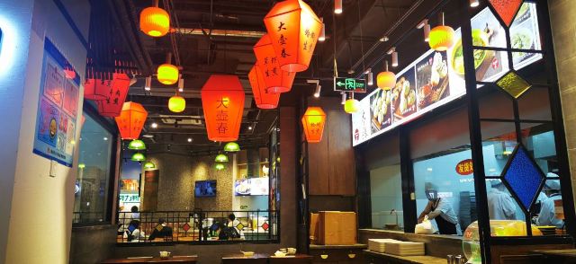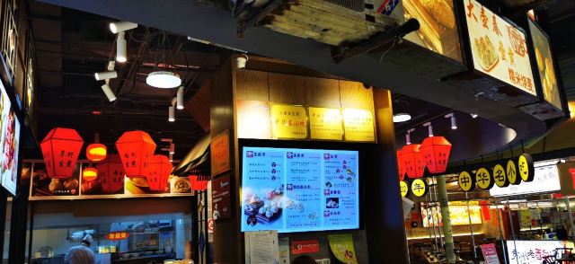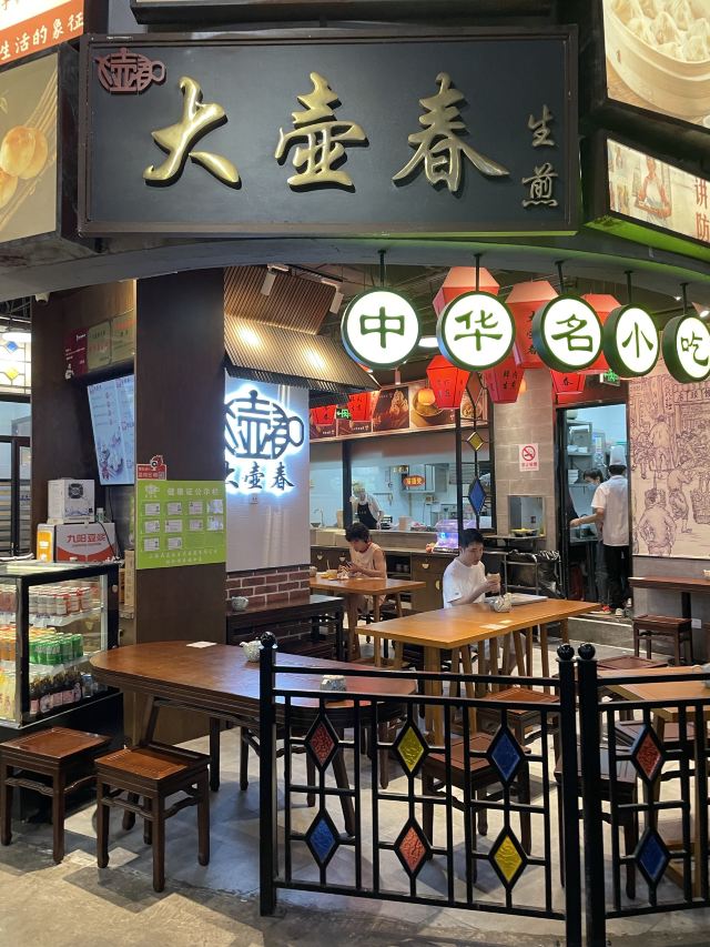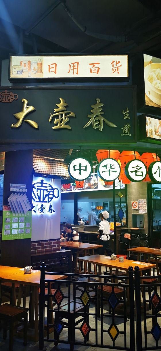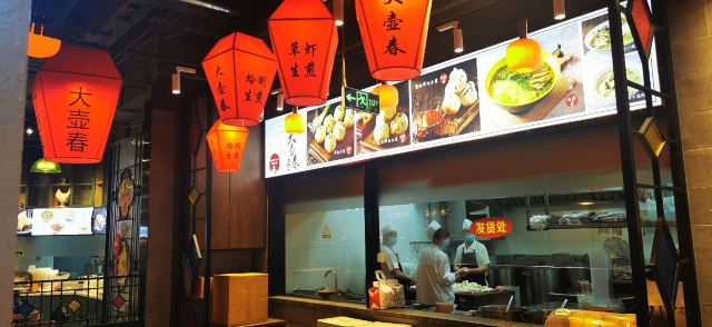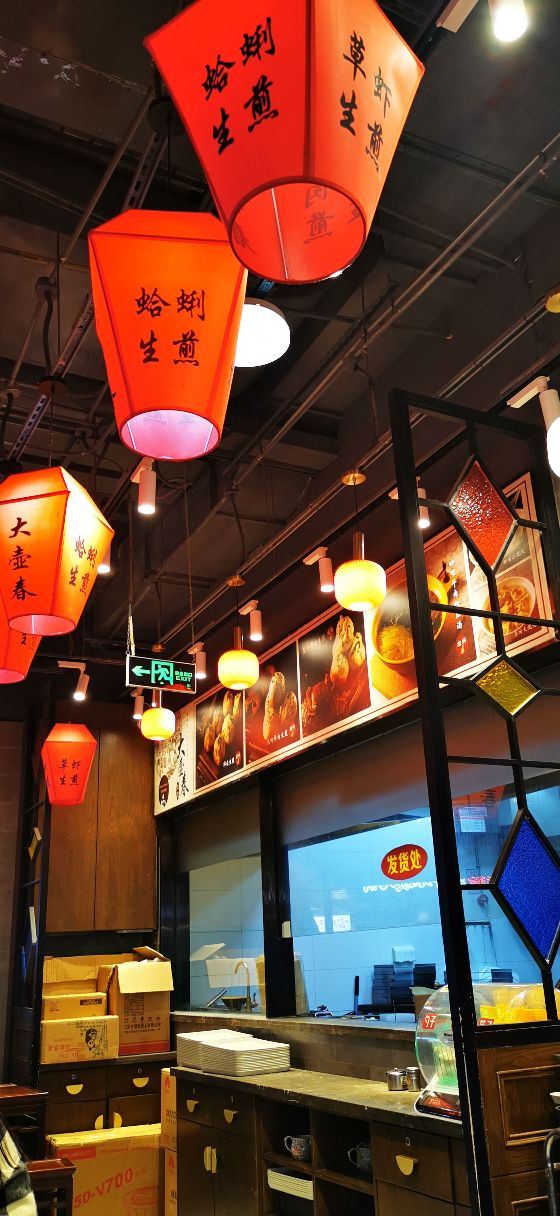 大壶春四川中路的总店好些年前曾去过一次,感觉一般般,还不如浙江中路上的分店,不过前几年主要还是去美罗城楼上大食代内的大壶春,位置好,新鲜出炉,味道好的很。可惜美罗城的大食代莫名其妙整层关了一年多,也不见新开,搞什么搞。还好,北外滩来福士商厦地下二层的城市集市里弄,也象大食代一样,集聚了各种传统小吃,大壶春又在这里开店了。生意似乎现在马马虎虎,但位置不错,大红灯笼高挂显眼,座位也宽敞,还是保持一如既往的水准,家人蛮喜欢,而且大壶春的生煎带回家重新加热的话,基本还能保持其口味,而象东泰祥的生煎就只适合现场吃了