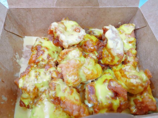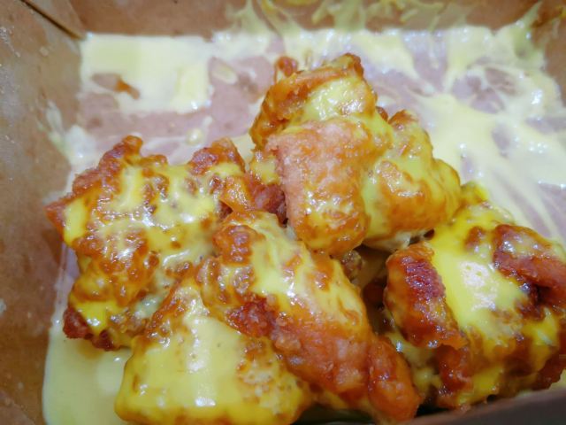 我和外甥女在一起时会点些外卖改善口味这次两个人都想吃香喷喷的炸鸡,搜索了一下就点了离家最近的朴正昊韩式炸鸡。 服务:在家安心等炸鸡送上门,骑手到店后取餐后就直奔我家,所以拿到手炸鸡还很热。店家还贴心的准备了一次性手套,所以戴上手套放心的啃炸鸡吧。 |人气甜辣炸鸡^我们选的蜂蜜芥末口味炸鸡,再配了甜辣酱。这无骨鸡肉外脆里嫩,趁热吃美味极了。蘸了甜辣酱口感也相当好,这两个酱料我都喜欢。 有了炸鸡再来罐啤酒?不不不,我们不喝酒。来瓶大容量的快乐水,倒在杯子里,吃了炸鸡再咕咚咕咚喝几口可乐,然后一个满意的咯就打出来了,来干杯,再来块炸鸡!