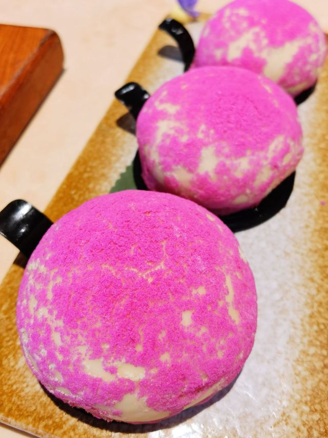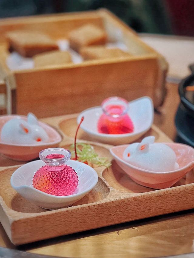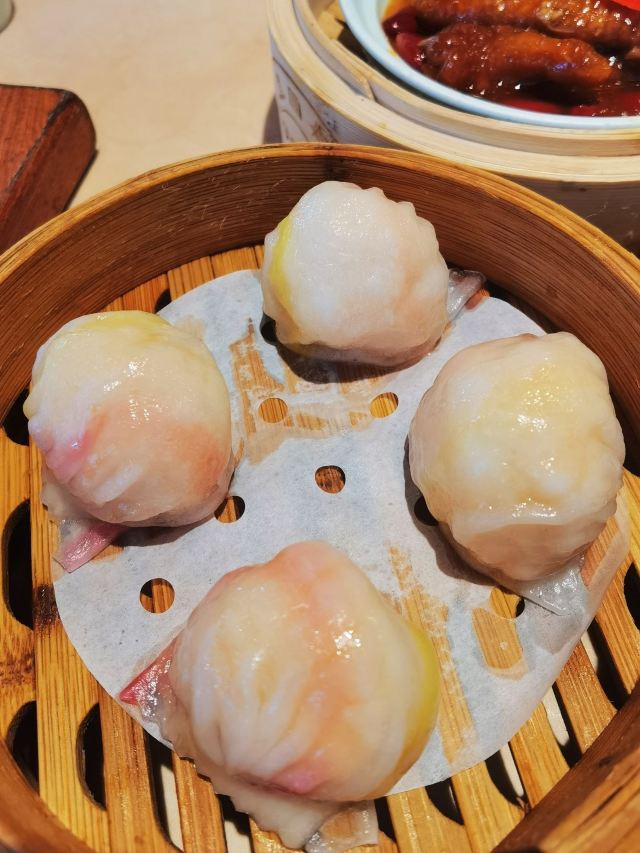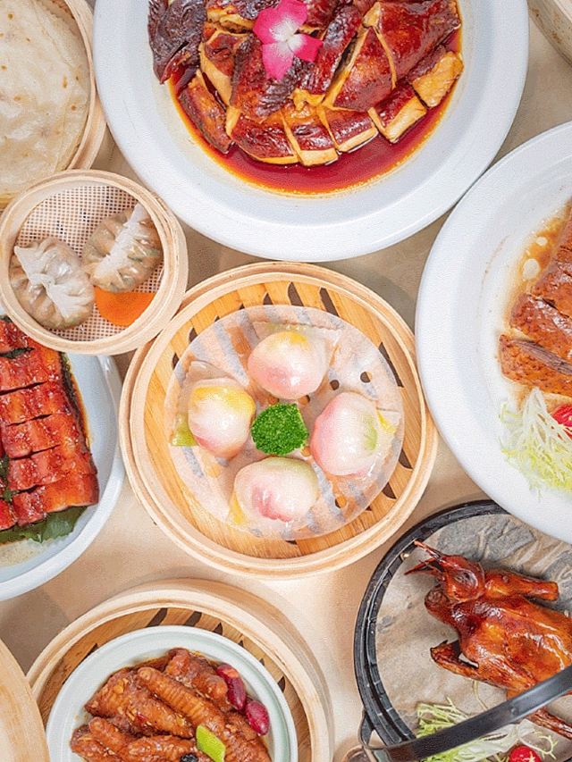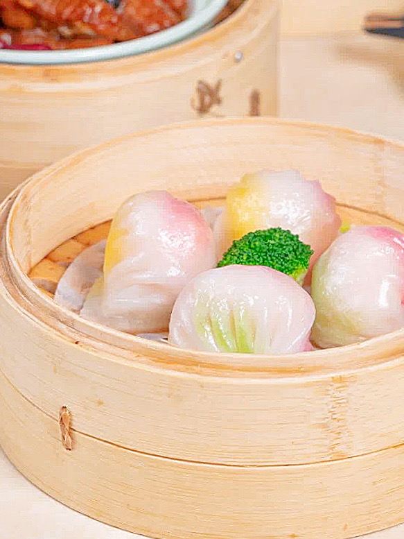 环境处处充满着古早风情,直接把岭南建筑和小桥流水搬进餐厅的丰圆轩粤式茶楼(长风大悦城店),没想到菜品却有各种好玩好看好吃的新式茶点,爱! 👉 点心陆陆续续上桌,饭搭子们立即挖到一颗显眼包虾饺!招牌款【丰圆轩虾饺皇】,用了天然的火龙果/菠菜/黄栀子调色,高颜值的三色混搭虾饺皮超美腻~ 👉 同样用到火龙果的【小白兔爱上花瓶】,则是甜品里的首选款,之前在Ta家大宁店也吃过,这次继续PICK! 👉 很多茶楼都有的【鲜虾红米肠】,却因为麻酱🆚酱油的蘸料搭配,而变得口味独特。