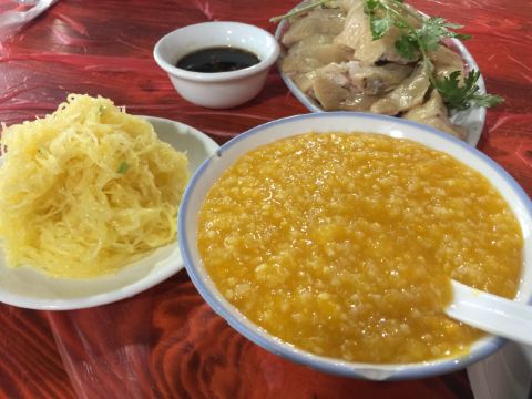 红烧羊肉,白斩鸡,油焖茄子,南瓜小米粥,南瓜薏米粥,农家蛋饺,崇明毛蟹,凉拌金瓜丝,红烧鳝筒,崇明糕,土鸡汤,炒螺丝,油闷茄子,清蒸梅子鱼,红烧野生黄鳝