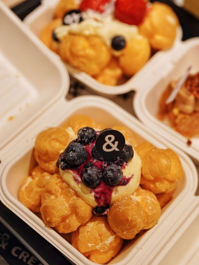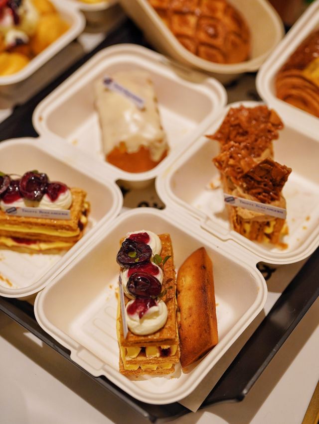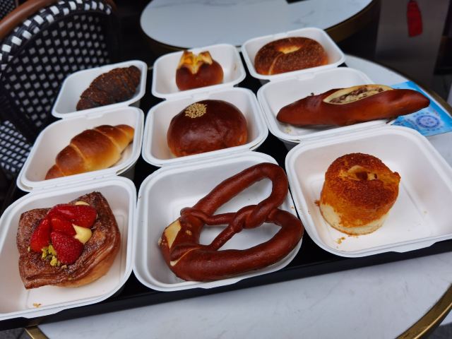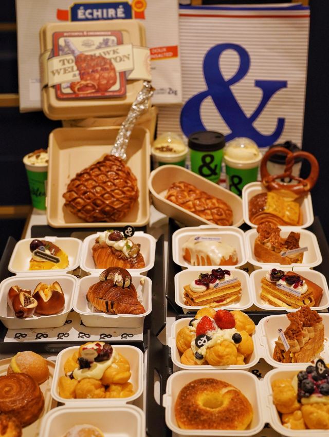 惠灵顿牛排牛角包系列,熏鸡肉芝士牛角包,草莓奶油牛角包,巧克力长泡芙,草莓蓝莓蛋糕咸奶油泡芙,经典提拉米苏