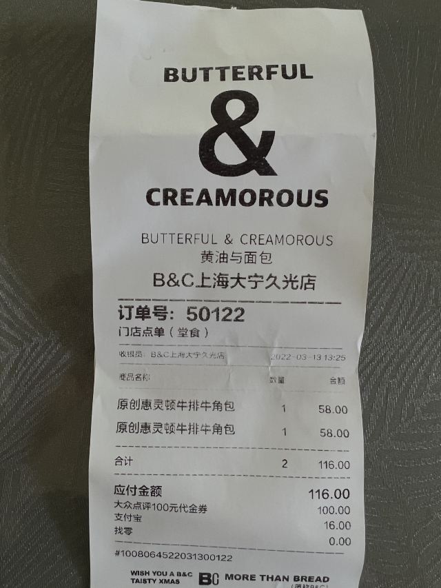 寂寞的西瓜wuli浦西人民的管控在即,绿袋子却依然人气不减的亚子,果然够魅力。 📍 名称:「BUTTERFUL & CREAMOROUS 黄油与面包(久光中心店)」 店铺地址:共和新路2188号大宁久光中心1层M123-2室 营业时间:11:00-19:00(特殊时期) ⭐️ 草莓奶油牛角包 面包果然只爱各种甜甜der! 招牌的各种牛角包,口味都hin不戳,使用的蓝莓、草莓等等水果,品质也始终保持稳定。 ⭐️ 经典卡仕达面包 绿袋子家的卡仕达酱,甜度还🈵️友好哒,不怎么甜腻。 ⭐️ 酸奶芝士灌浆曲奇 加热更好恰系列,微微复烤之后,口感绝绝子!和常温状态对比一下下。简直判若两款[偷笑][偷笑] ⭐️ 分子芭乐美式 芭乐和美式可以搭,柠檬和美式也可以搭,但是把芭乐、青柠和美式统统加在一起,就真的莫名违和赶脚。哪怕芭乐本身的质量很🆗,也救不了。 ⭐️ 招牌分子香水柠檬茶 清新纯粹的青柠味,即使选择了不另外加糖,还是非常不错喝,有回甘的口感。 🔖 贴心tips: 目前还是常常会排队,但比起原先正常生活状态时的惊人队伍,现在算是可接受范围。并且,晚上营业结束前,大概率可以GET免排队捡漏机会。