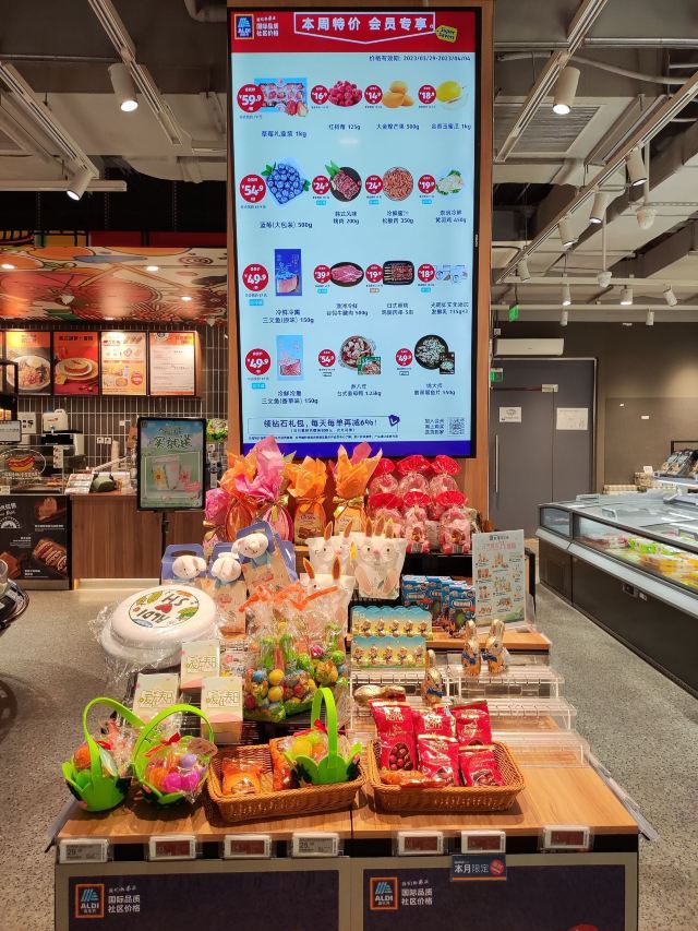 ALDI奥乐齐创立于1913年,是德国的连锁超市。2017 年,奥乐齐正式进入中国。 2019年,借电商平台进入中国市场两年后,德国最大连锁超市ALDI奥乐齐在上海的线下实体店开业,ALDI微信小程序商城也随之上线,并提供快速配送服务。 金杨店主要经营休闲零食(巧克力、饼干、糖果等),生鲜食品(新鲜果蔬、海鲜、牛肉、猪肉、豆制品等),即食食品(面包、蛋糕🍰、寿司🍣等)、即烹食品(烤串、烤猪蹄、烤鸡、便当等),粮油米面副食品,调味品,饮料乳制品,日用品等。冷冻冷藏区还有各类袋装食品可供选择。