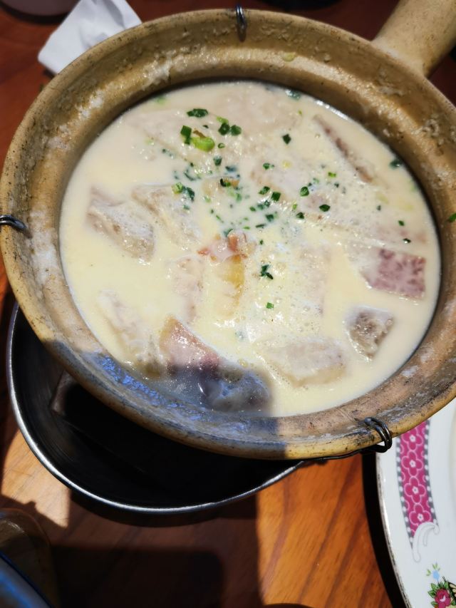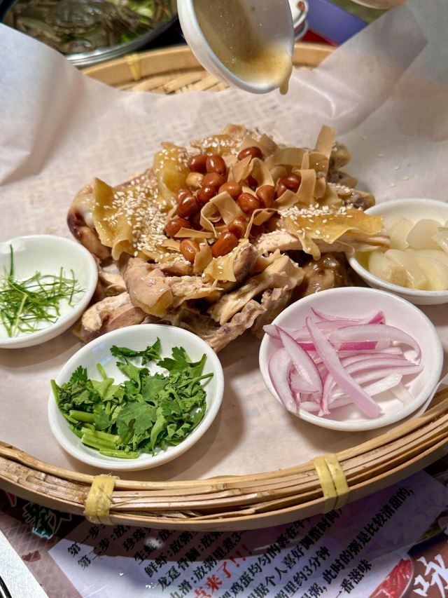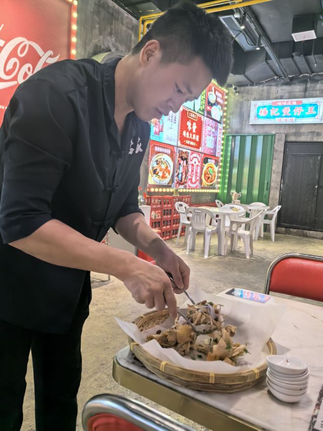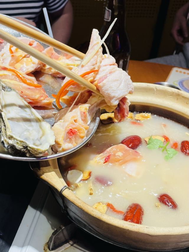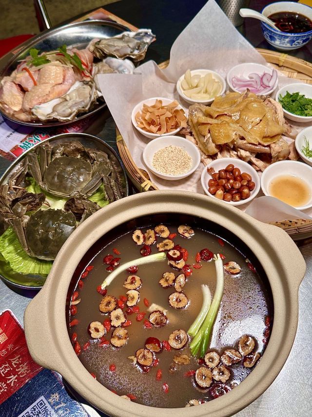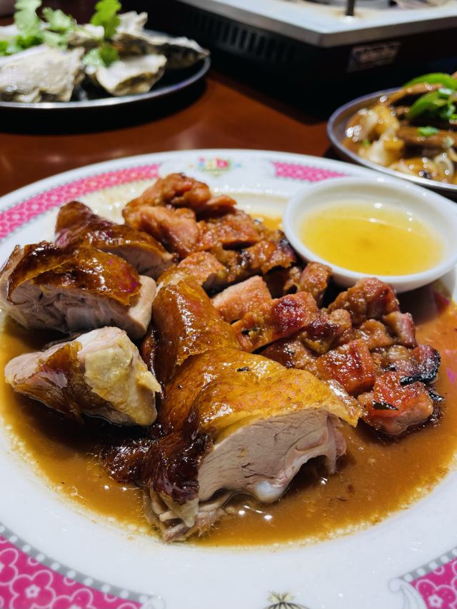 YoYo_2M5Z0U6Y本以为吃过很多粤菜了,到了咏发顺德大排档才知道还有很多新大陆! 之前在上海吃过很多家粤菜,也去过广东很多地方,平常吃过很多种广东美食,本以为广东菜差不多都吃过了。那天和朋友经过咏发顺德大排档,觉得环境装修很复古,很怀旧,就走进来看看,拿到菜单就很意外,很多菜都没有尝过,服务员介绍,这家店是主打顺德菜。在服务员的推荐下,点了几道特色菜。先上来的就是顺德捞鸡,中间是鸡块,旁边几小碟调料,服务员把调料依次加进去,拌匀以后,一股独特的香气弥漫出来,鸡肉口感很好,很有特色。另外一个印象深刻的菜是大闸蟹生蚝鸡肉煲,这三种食材搭配起来,真的很鲜,服务员会摆放一个计时器,每种食材的炖煮时间都是严格控制,以保证口感和味道。其他的菜也各有特色,整体上感觉这家餐厅环境有氛围,食材新鲜味道好,听说还有粥水火锅,粥水堂灼龙趸鱼片都很有特色,有机会再去尝尝其他的特色菜。