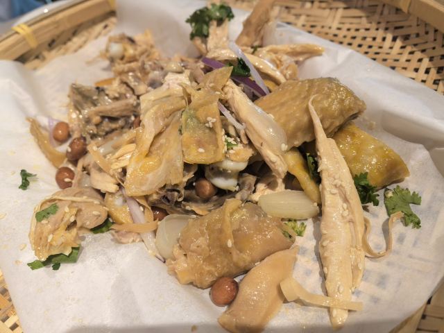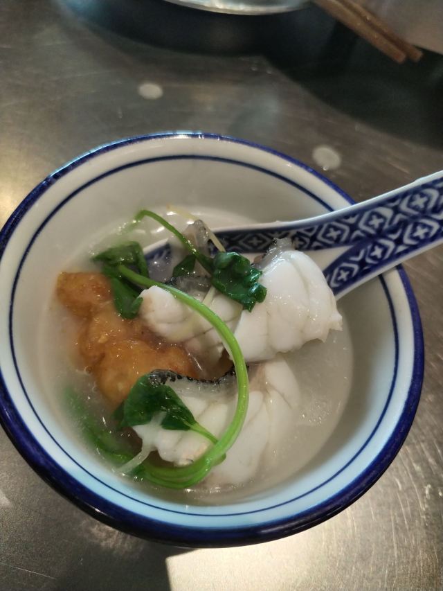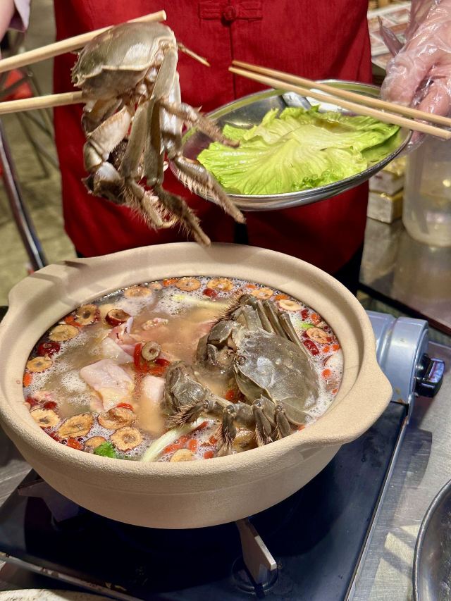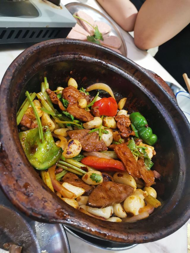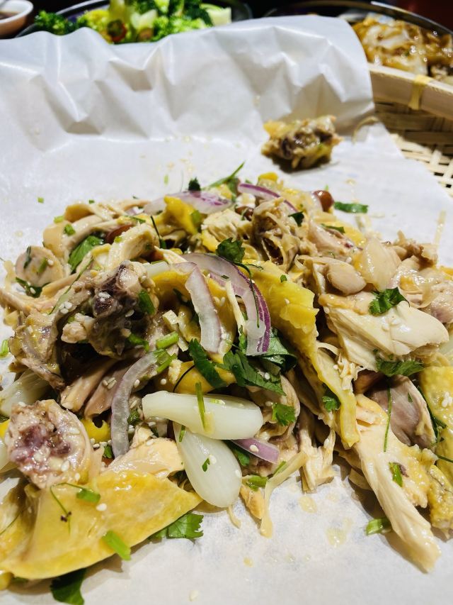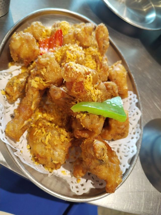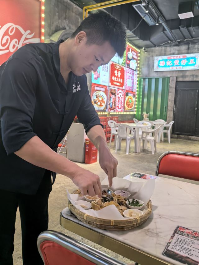 YoYo_2M5Z0U6Y本以为吃过很多粤菜了,到了咏发顺德大排档才知道还有很多新大陆! 之前在上海吃过很多家粤菜,也去过广东很多地方,平常吃过很多种广东美食,本以为广东菜差不多都吃过了。那天和朋友经过咏发顺德大排档,觉得环境装修很复古,很怀旧,就走进来看看,拿到菜单就很意外,很多菜都没有尝过,服务员介绍,这家店是主打顺德菜。在服务员的推荐下,点了几道特色菜。先上来的就是顺德捞鸡,中间是鸡块,旁边几小碟调料,服务员把调料依次加进去,拌匀以后,一股独特的香气弥漫出来,鸡肉口感很好,很有特色。另外一个印象深刻的菜是大闸蟹生蚝鸡肉煲,这三种食材搭配起来,真的很鲜,服务员会摆放一个计时器,每种食材的炖煮时间都是严格控制,以保证口感和味道。其他的菜也各有特色,整体上感觉这家餐厅环境有氛围,食材新鲜味道好,听说还有粥水火锅,粥水堂灼龙趸鱼片都很有特色,有机会再去尝尝其他的特色菜。