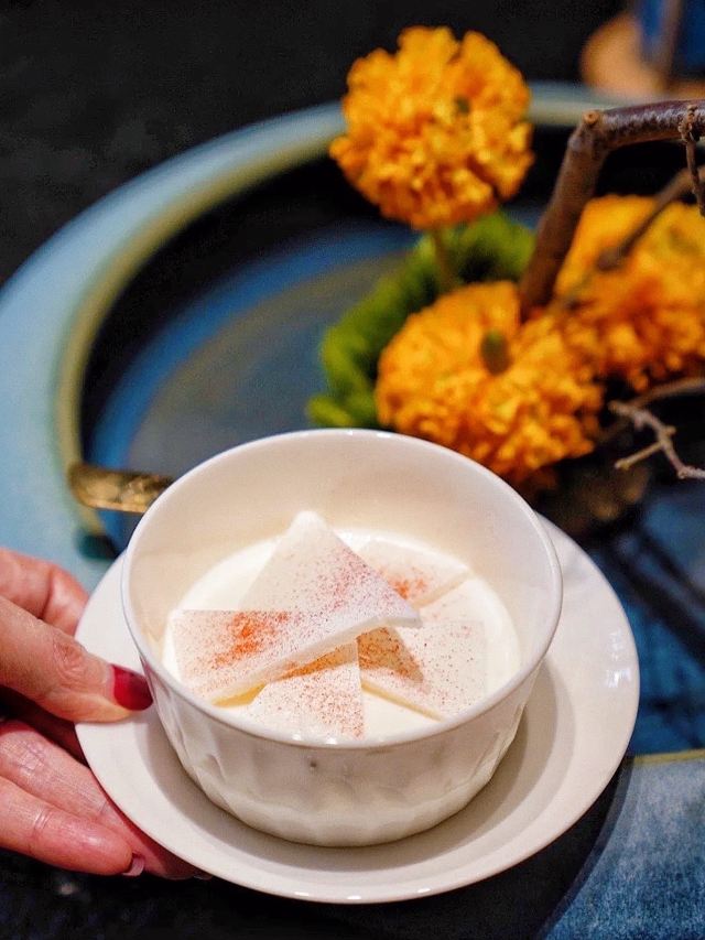 吃腻了寻常菜,这次来品尝点不一样的美味,茗膳里带你走进私房菜的静谧时光🍃 一个“膳”字就代表了“珍稀、珍贵”之意,每一道菜品都倾注了厨师的美味故事与趣味人生,对于每个吃货而言,也是对美食的终极追求。 绍兴路上的独栋门户,所谓酒香不怕巷子深,虽坐落于闹市,装修却给人悠然自得的舒适感,清雅幽静,沉稳大气,有着商业街区感受不到的韵味。 菜品惊艳脱俗,上菜有条不紊,周到贴心的服务有种宾至如归的亲切。在这里,会愿意花时间走过每一个角落,与三两好友饮酒聚餐谈天说地🍷 🦀️黑豚肉蒸红蟹🦀️ 上桌就是一整只拆分好的红蟹,不似膏蟹与帝王蟹,红蟹肉质更加细腻,垫底的黑豚肉与螃蟹完美融合,咸鲜之中带着一丝丝鲜甜 🦢拆骨鹅掌🦢 将鹅掌剔骨是一个极其考验刀功的技术活,恰恰这道菜品完全做到了鹅掌骨拆而肉不烂,鹅掌软硬适中,搭配咸淡适中的酱汁调味,令人回味无穷! 🦩核桃鹅肝🦩 鹅肝被制作成核桃的形状,栩栩如生的逼真造型,轻盈口感真是太奇妙了,质地有点像入口即化的戚风蛋糕,完全没有鹅肝的肥腻 🌼茉莉花香薰九年百合🌼 将百合放入蒸笼中,用沙漏倒计时蒸上12分钟⌛️百合入口即化,有一股淡淡的清甜,搭配咸口的菜品和日光米,一小碗的米饭恰到好处🍚 🏡茗膳里 📍绍兴路23号2号楼1层