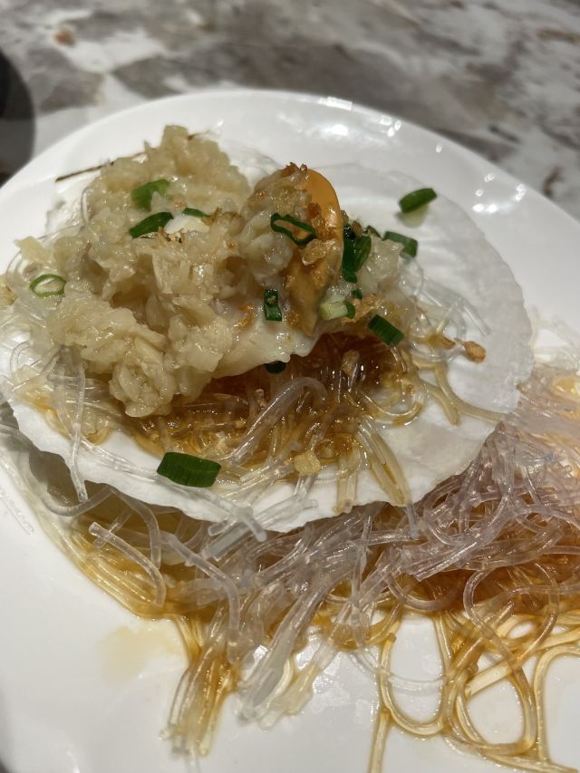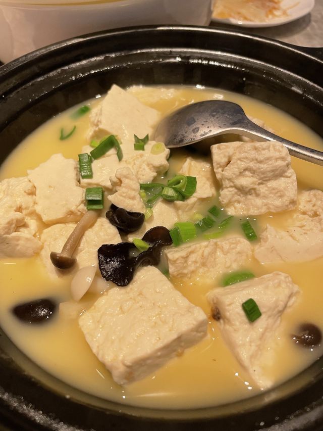 润苑·悦椿轩(杨浦长阳创谷店) 团购了99元双人餐和金蒜蒸大元贝,双人餐够吃了,实惠。 服务是加分项,服务挺好的,给服务点赞 招牌农场咸鸡 蔬菜沙拉 有放杏仁 咖喱土豆大虾 毛蟹烧年糕 白水洋豆腐 猪油炒大白菜 这个好吃 桂花酒酿丸子 金蒜蒸贝