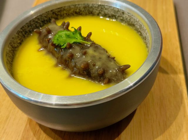 YoYo_2H2E1Z1K5D全息盛宴,让你感受光影交错和美食的融合 魔都开了5D全息投影的私房菜,这种极致私房菜的体验绝对是你从来没有见过的,他采用预约的方式,让你沉浸在光与影的魔幻世界里,还可以吃到高品质的私房菜! 【锦绣五拼】寓意满满,五色五味,摆盘精致,味道也是很不错,尤其是西班牙火腿配哈密瓜和樱桃鹅肝,非常可爱,美味 【海南椰皇炖花胶】用上了一整只椰皇作为容器,里面整整两大块花胶和竹荪,这味道鲜的不得了,汤色清澈,有一股大海的感觉和光影场景刚刚好相互辉映,真的绝了 【红酒雪梨5A+和肉】精选澳洲和牛,牛肉外的一层酱汁很浓郁,文火,慢炖出来的肉质,还搭配了红酒香梨,味道很特别! 【泰汁脆皮辽参】个头挺大,外皮金黄酥脆,炖的软烂 Q 弹,入味爽口。酱汁酸甜可口,特别开胃。 【藜麦燕香大虾】超大的开背大虾,虾线也处理了,肉质饱满弹牙,鲜甜可口搭配藜麦浓郁的燕香味,简直太棒了 下次再来!