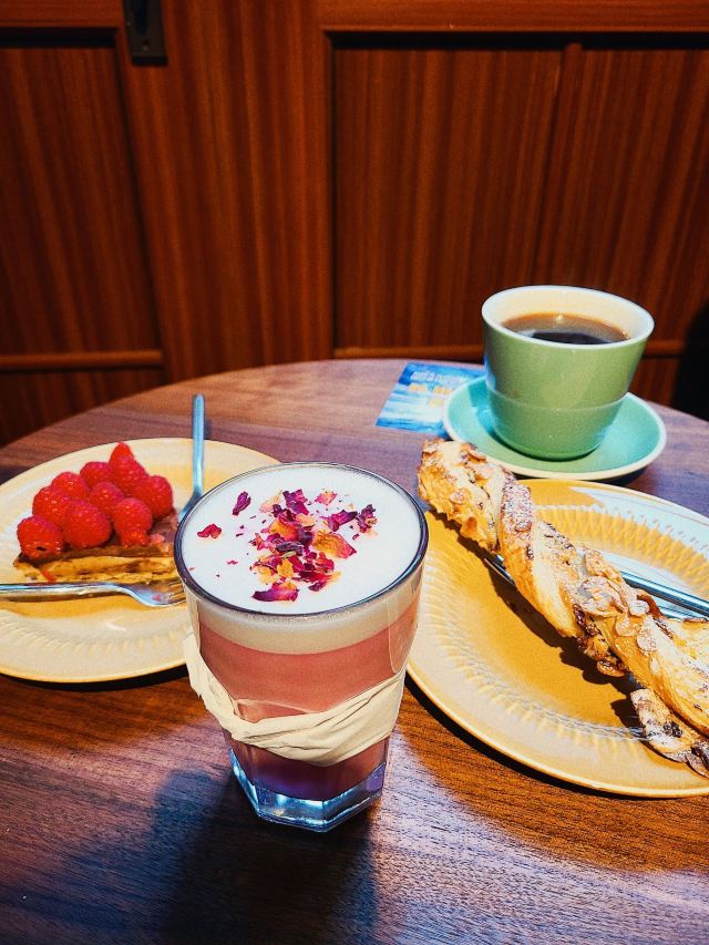 amydog2022-1-24 红红火火迎🐯 挑剔的男首富啊…嫌边Mstand店太小除了咖啡没有吃的(乡下柠土豪既视感),嫌边Lavazza要走出蛇形通道绕到今潮8弄外面……算了,他是金主他说了算😅 【环境】 确实是几家店里最大的,总得来讲,今潮8弄里的店都偏小,但是,暖气很不足好像漏风,脱衣服有点尴尬……这里要实名表扬Mstand,进去兜了一圈暖气相当可人了 【口味】 |红红火火^28,火龙果汁加花瓣吧,入口很香,花香,主打新品,却没告知桃胶用完了不能出品,艾小米说那就不要放桃胶吧,就想要这杯,因为美貌 |树莓焦糖芝士派^35,艾小米看到毛茸茸的树莓就会走不动路…夹心里的浓郁焦糖巧克力酱好好吃,正好配合树莓 |苹苹无奇美式咖啡^杯子好大 |蔓越莓扁桃仁卷^男首富挑了半天之后,说,我要这根搞来搞去的么事……结果这根蔓越莓不晓得是漏单还是怎么好久没来,招呼服务员,我们那根搞来搞去的东西怎么没来?小姐姐端过来的时候说,哦,你们点的搞来搞去的这个!🤣🤣🤣 其实艾小米想首富点图9的三文鱼什么,然后可以挖一点,没想到首富现在口味如此素😮💨 【服务】 当天点单的小姐姐不晓得是新来的还是兼职,几乎属于一问三不知状态……且反应很慢 发了⭕,小伙伴都说,怎么又包场了😁