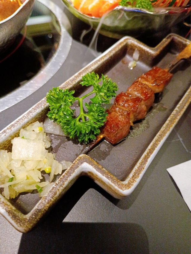 焦头烂额的小草妈上周三陪着爸妈逛天安千树,疫情过后的第一顿堂食还是选择了剑池屋。因为在2月份和老公来吃过,对于它家的食材的品质和服务还是认可的,所以带着爸妈也来试试。 |芥末章鱼^|芥末螺片^这两个菜都是我的最爱了 |厚切三文鱼腩^拼甜虾,妈妈非常喜欢鱼腩,后来我又帮妈妈点了一份 |百年酱烤牛舌片^这个牛舌非常的嫩,经志文店长介绍,包裹着洋葱粒吃又是不同的风味,所以这道菜我也点了两份👍🏻 |M6和牛寿喜锅^牛肉涮六秒即可,蘸着无菌蛋液,香滑入口即化 |活杀蒲杀鳗鱼饭^这是来它家必点菜之一,活杀现烤,一点也没有腥味,我妈妈从来不吃鳗鱼的,这个鳗鱼饭她吃了好多😋 看着爸妈吃的满意,我也非常开心,我还会三刷此店 😊