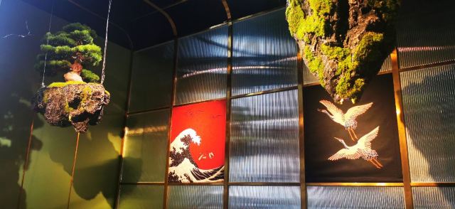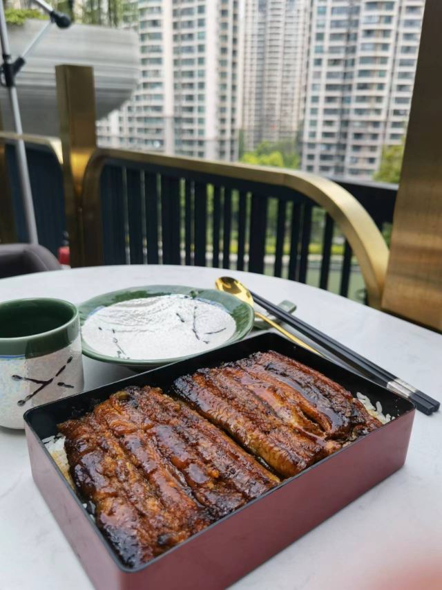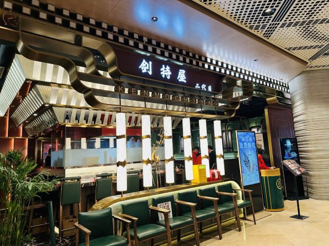 焦头烂额的小草妈上周四中午趁着孩子上学,和老公出来打卡现在网红地~天安千树。工作日人流还是蛮多的,特别是餐厅,很多餐厅门口都或多或少有人排队。我们在点评网上看到剑持屋有活杀现烤鳗鱼饭,而且还有代金券可以用,所以就慕名而来了。店铺生意不错,一直门口有人等位,而且听出来都是老来的客人。店里大部分都是卡座,还有两个六人的包房,和一个八人桌。进了店来心里还是有些担心,因为看到网上有两条差评,说鳗鱼饭不好。来了之后在点餐之前,特意询问了这家的金姓店长,她给出的答案,我们是可以接受的。 现在说菜品吧 招牌鳗鱼饭300克^上来的卖相是有点松散,不过味道真的是不错。店长答疑:她家用的是关东鳗鱼饭的做法先烤再蒸再烤,多了一个蒸鳗鱼的过程,在蒸的过程中,鳗鱼的毛孔会打开,所以第二次蒸鳗鱼是会更加入味,但是形象上就会次点了。 比目鱼寿司^入口即化的比目鱼赞的 刺身拼盘中份^精致摆盘好看又好吃[偷笑]三文鱼,北极贝,甜虾品质都很好,不过有点小小瑕疵,北极贝我吃到的一片有一点沙 M6和牛寿喜锅^M6和牛肉质非常好 烤牛舌^可以说是我吃到最好的一次了,非常嫩而且还有汤汁 再说说服务 放包的篮子^很贴心的在吧台每个坐位下方都有一个篮子供客人放包 服务员飞飞周到细致的服务,还有金店长耐心的解惑答疑,给他们点赞! 店铺还有一个大露台放有五六桌,下次我要和闺蜜一起坐在这里边吃边聊边赏风景。