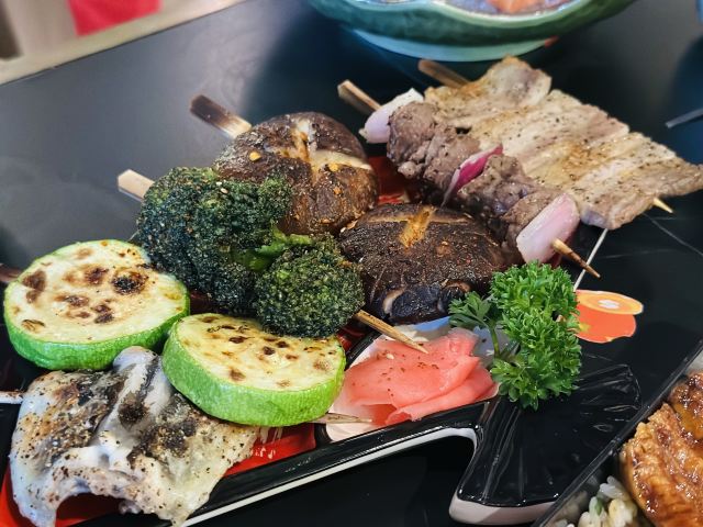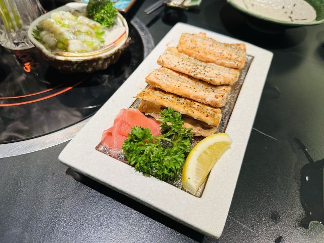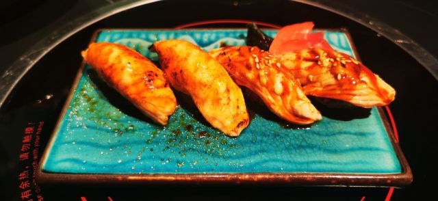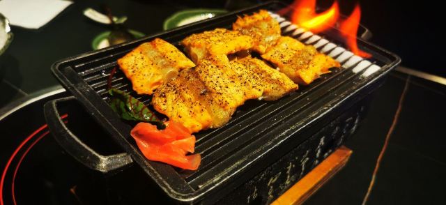 蒲烧活鳗鱼饭,菲力牛排,烤和牛牛舌,玫瑰花冰脆蔬菜沙拉,焦糖芝士拼炙烧三文鱼寿司,盐烤大青花鱼,招牌蒲烧200克鳗鱼饭,寿喜锅,刺身三拼盘中份,招牌鳗鱼饭,三文鱼汤,蔬菜沙拉,鳗鱼拼鹅肝饭,香煎鵝肝,鳗鱼拼菲力牛排