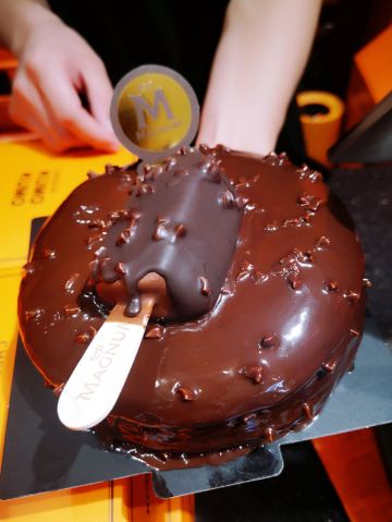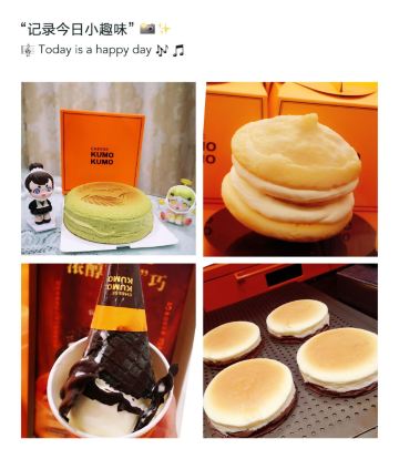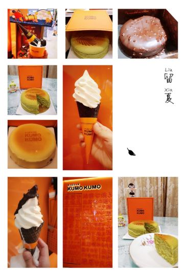 蓓家温暖去环球港购物被一阵清脆的摇铃声吸引,一抹熟悉的爱马仕橙色,原来是魔都排队王芝士蛋糕品牌KUMO KUMO家蛋糕刚制作完成。新出的梦龙黑巧芝士蛋糕每日出炉时间是12:30分,全天限量23份,每人限购一份。爱尝新品的我肯定要加入排队大军了。 环境:KUMO KUMO特色就是让消费者看到透明的手工现制过程,开放式厨房摆放着全套橙色定制的烘焙设备,整洁明亮的环境和店员行云流水的操作让等待也成为更多期待。 服务:店员分工明确,操作台前向消费者展现着从蛋糕制胚到烘烤、烙印再到经典的摇铃告知,带着标准化和仪式感,每日限量版的梦龙黑巧芝士蛋糕在准备期间就会有店员在店面前竖起栏杆让大家有序排队并发放纸牌确认,对顾客有问必答,礼貌招呼和送别服务规范又热情。 |芝士牛乳冰淇淋^排队一个多小时,观看蛋糕制作全过程间隙吃了一个芝士牛乳冰激凌,甜中微咸的芝士冰激凌绵密、冰凉碰撞在舌尖带来满嘴浓郁醇香。 |至臻黑巧脆皮芝士蛋糕^巧克力达人不容错过的这款新品,表面淋满浓醇巴旦木碎的黑巧脆皮,切开后经典原味芝士和可可芝士蛋糕中间铺了一层赛尔维亚树莓酱夹心,带来了冰凉、醇苦、清脆、果香、柔软的5个层次口感,没有想象中的甜腻,是我喜欢的口感。 |斑斓椰椰芝士蛋糕^淡绿色蛋糕表面印上了斑斓叶图案,绵密软糯的蛋糕里有着细细的椰肉,中间还有椰蓉夹心酱,带着椰子味清香最适夏天了。 成年人不做选择题,喜欢就是都要,今日买的新品都给我无限惊喜,你可以永远相信KUMO KUMO。