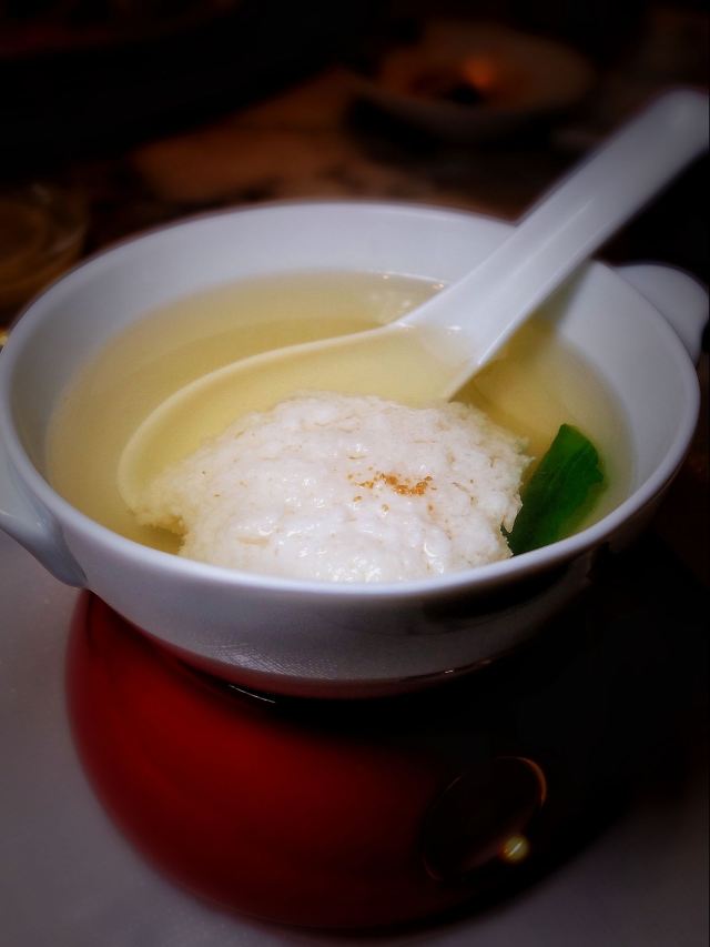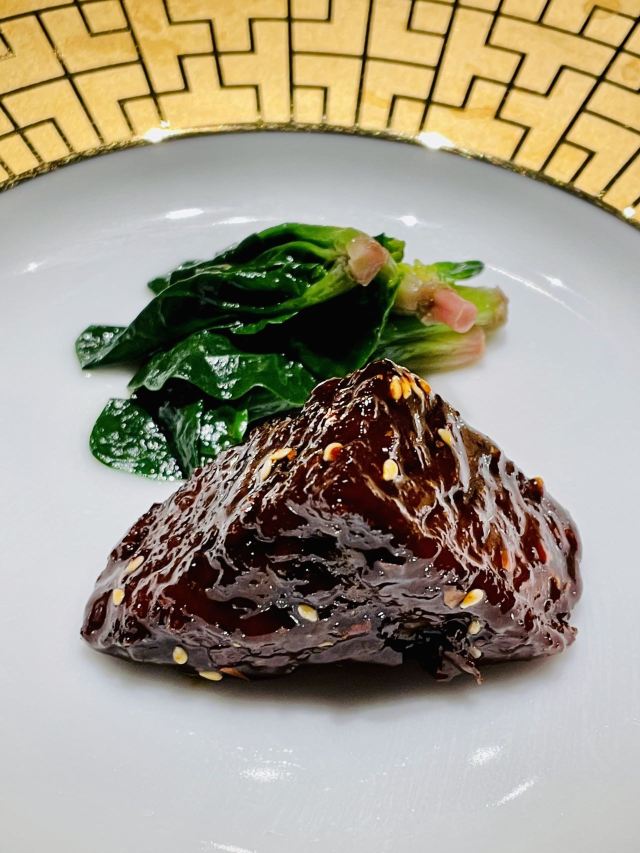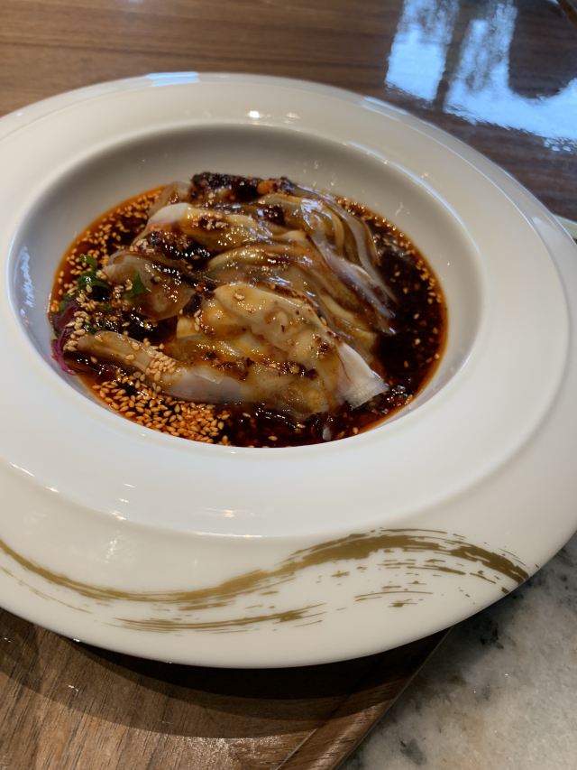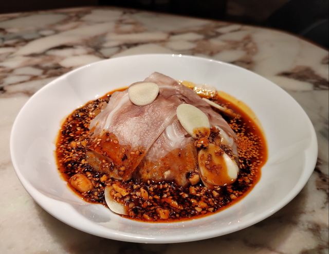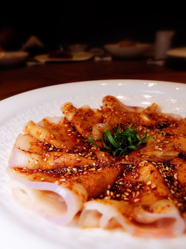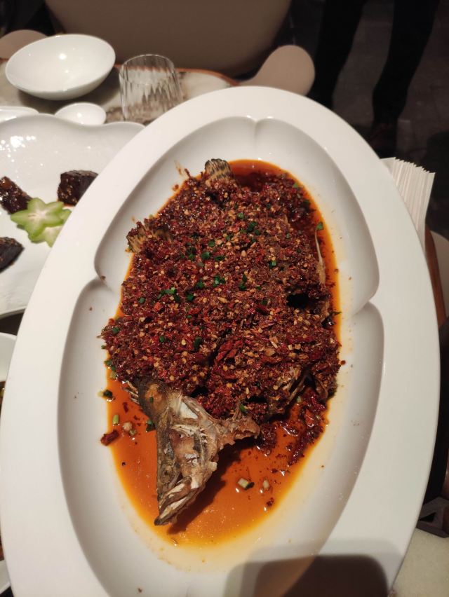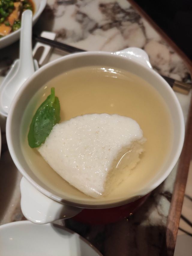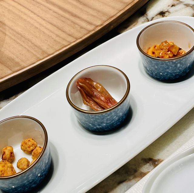 世界那么大可我只想走遍中国太古里的柴门荟门面有点低调,是家精致的川菜餐厅。最喜欢的是清汤芙蓉鸡豆花,无论作为开胃汤还是后面中和辣菜都是极佳的。怪味牛肉很棒,微微辣有点甜,不过三百多元才四块中等红烧肉大小的牛肉,价格挺辣手的。葱末猪肝不辣,猪肝很嫩,葱香扑鼻,就是油多了点。那道398元的炝锅刺婆鱼,感觉这种油炸又加了好多辣的做法,已经没有了鱼肉之鲜甜弹性,真对不起空运过来的两条小鳜鱼啊,清蒸是对新鲜活鱼最尊重的做法。油渣奶白菜,也是一道油过头的菜,根本不是油渣是肥肉丁!点心比较普通。 环境不错,即使周末顾客也不多,很安静,就是去卫生间的路有点过暗了。服务方面,换盆清理桌面很及时,而且上菜真快,还有菜品介绍,毕竟要收10%服务费。 总体而言不辣的菜还可以,就是要控制用油,辣菜不适合我。这价格这服务,还是留给公务宴请吧,讲性价比可以去同楼面其他餐厅。