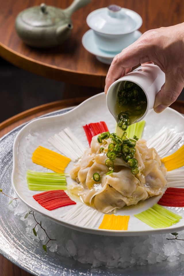 葱末猪肝,炝锅刺婆,松茸酱肉包,宫保老虎虾球,清汤芙蓉鸡豆花,怪味安格斯牛小排