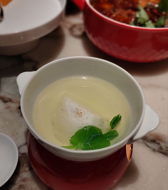 candicegarden🌴🌴对于川菜,通常印象停留在街头巷尾的热闹小店。 有没有可以一尝川菜麻辣鲜香风貌,又可以雅致而大气的饭店呢? 和一众小伙伴听说前滩太古便开了一家如此的川菜,便按捺不住,约上三五好友,相约去拔草,一探究竟👄 |清汤芙蓉鸡豆花^ 与赫赫有名的出水芙蓉之开水白菜如出一辙,属于非常清淡而鲜美的汤品。 鸡肉做成豆花一般,根本看不出原来是鸡肉做的。 清澈的汤底,非常的鲜美,非常适合夏季。 鸡豆花非常的细嫩,如同出水芙蓉一般,漂浮在清澈汤头之上。 这应该也是一种分子料理,非常有特色🌨🌨🌴 川菜中也是有如此清淡而清新的菜品的👍🏻👍🏻 |辣香黑毛猪手花胶公^ 猪手做的如此软糯,非常见功夫。 虽然说是辣香,但是其实只有微微的一点辣,非常适合于上海人的口味,更多的是软糯,浓郁。 菜品还放了花胶,来增加整体菜品的品质和格调。花椒也是非常滋养的,所以这份菜是满满的胶原蛋白🐷🐷 |松茸酱肉包^ 肉包是成都特色美食之一,街头巷尾也经常有成都包子品牌。 但他们家的包子加入了松茸这样的高级食材,让整体的口味和格调提高了很多🍄🍄 |泡椒雪花牛肉^ 雪花牛肉用泡椒酸汤的方式来烹饪,但不用担心,真的不是很辣,只是有一点点辣和酸,来提味解腻,使浓郁的雪花和牛口味更好,口味层次更丰富🐮🐮 |炝锅刺婆^ 刺婆鱼是成都一个独特的鱼品,鱼肉非常的细嫩。 不要看他满满的红辣椒铺在鱼上面,但其实更多的是香浓,并不是辣。 外皮焦香浓郁,内里细腻鲜美🐟🐟 🍑环境:新进时尚地前滩太古里的四楼,整体装修风格非常的洋气。 暗暗的灯光,非常罗曼蒂克。 🍑服务:非常的规范,用餐之前服务员还会致辞,每道菜都会仔细的介绍,很多大菜会给大家分食。 🍳店铺:柴门荟前滩太古里店 🍳地址:东育路500弄前滩太古里石区L4层S-L4-04柴门荟 🍳交通:6.8.11号线东方体育中心站2号口 🍳停车:地下停车场石区,非常方便。