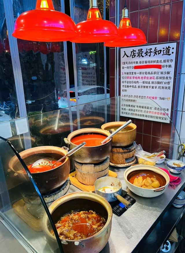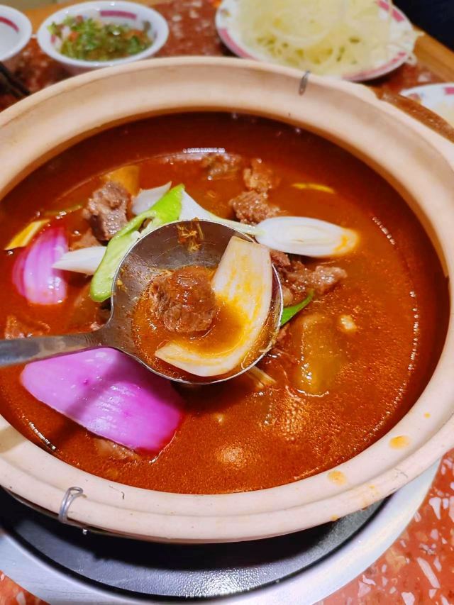 味道非常不错的牛腩煲,有点辣味,配菜的话强烈推荐牛筋,再点上一杯绿色的柠檬茶,非常可口。店堂环境一般般,价格比较亲民。服务是亮点,非常周到。