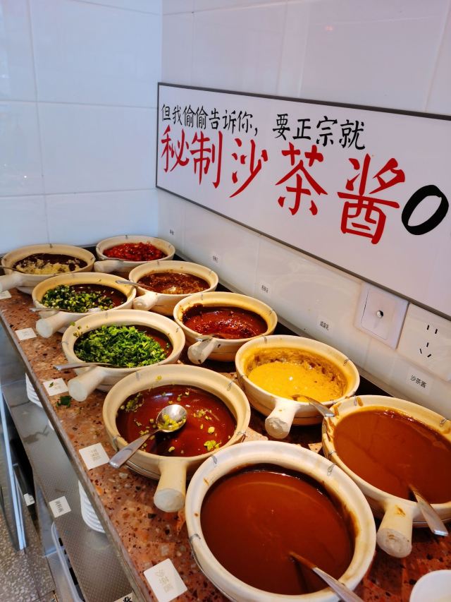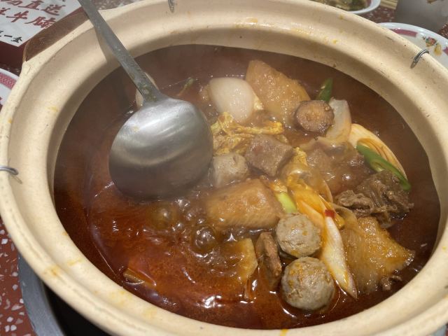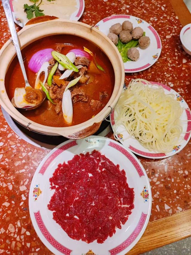 两三个人的话点一个小锅就够了。牛腩很酥烂,牙口不好的老人都能吃。垫底的萝卜多煮一会儿,吸收了汤汁后特别美味。蘸料里的沙茶酱一定要尝一下,典型的潮汕口味,甜甜的,很适合上海人。粿条也是他们家的特色,涮几秒就好,拌着沙茶酱简直人间美味。