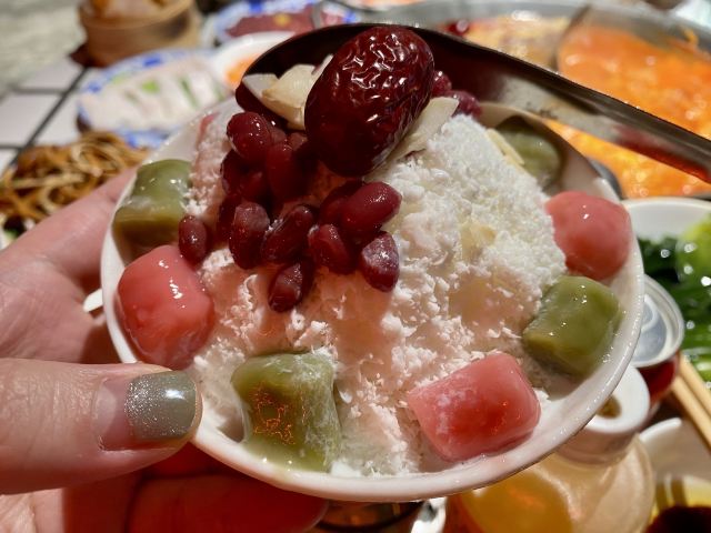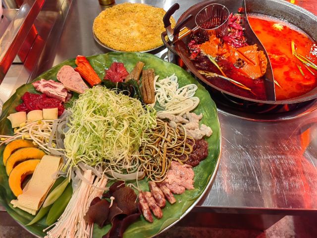 虎皮凤爪,藤椒牛舌,椰浆虾滑,啵啵鱼豆花,鲜鸭血,整颗芒芒牛乳冰