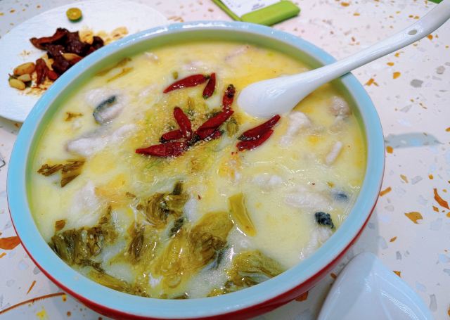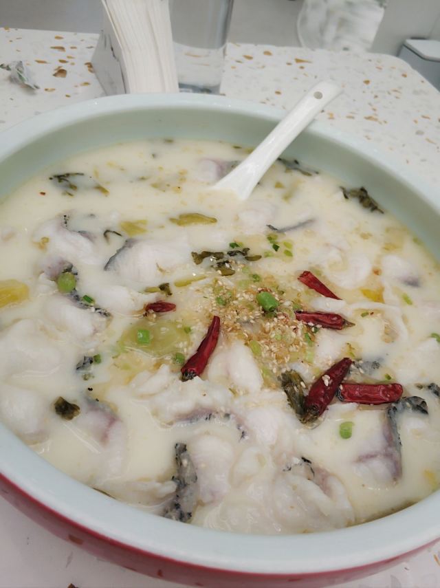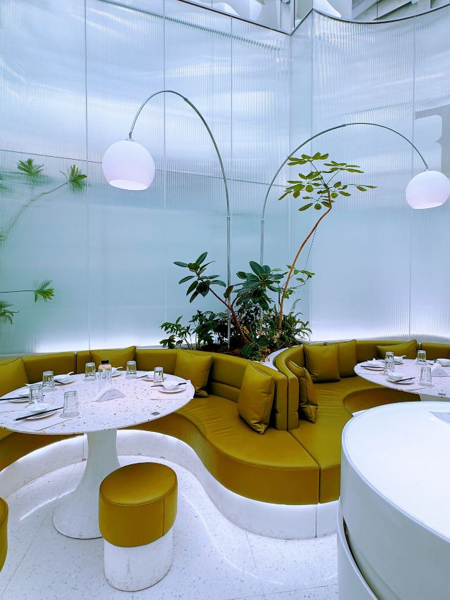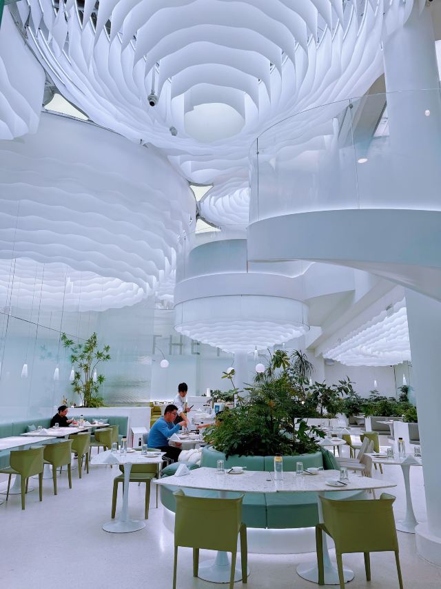Yukiruru装修亮堂,之前也是一家网红店了,现在还好,可能去的时候工作日人不多,外面没有人在排队。 写的是粤菜,但看菜品不像,有点创意菜。 🌳环境:白色仙气飘飘的风格满新颖的,就是坐久了感觉这灯太亮有点疲累感。 燕麦虾:这道菜我蛮喜欢 豆腐:是椒麻味的,我老公不太爱吃麻的 鱼:汤底好喝,鱼肉鲜嫩