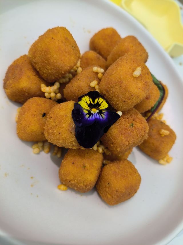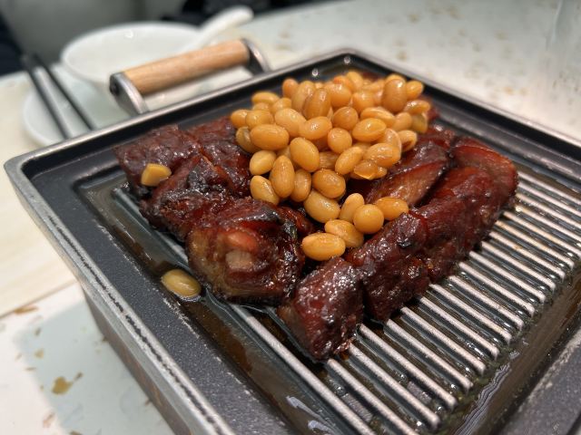 Iamis环境的视觉感比较强烈,胜过菜品! 【环境】很大气的环境,科技感,宽敞感,整体看着很舒服,座位间距比较大。 【服务】服务一般,一位实习生很卖力,很好。其他服务一般,要一杯温水要了2次。 【口味】 【炭烧蜜汁叉烧】端上来的叉烧,下面是带火还在加热的。第一口就觉得比较咸,配米饭会好一些,肉的肥瘦程度好好。上面的黄豆挺好吃。 【咖喱面包虾】没有选鸡,选了虾。亮点是面包,的确面包比虾好吃。虾不是特别新鲜,有一只后半段的肉是没有弹性的。不推荐! 【无油鱼汤煮时蔬】鱼汤也偏咸,奶白色有点令人难以置信。鱼丸也是加了比较多的料,口感也咸。奶白菜偏老。不推荐! 【鲍汁手工豆腐 】豆腐是日式豆腐,黄黄的那种,味道不错。锅里也有黄豆,勾芡的那种。