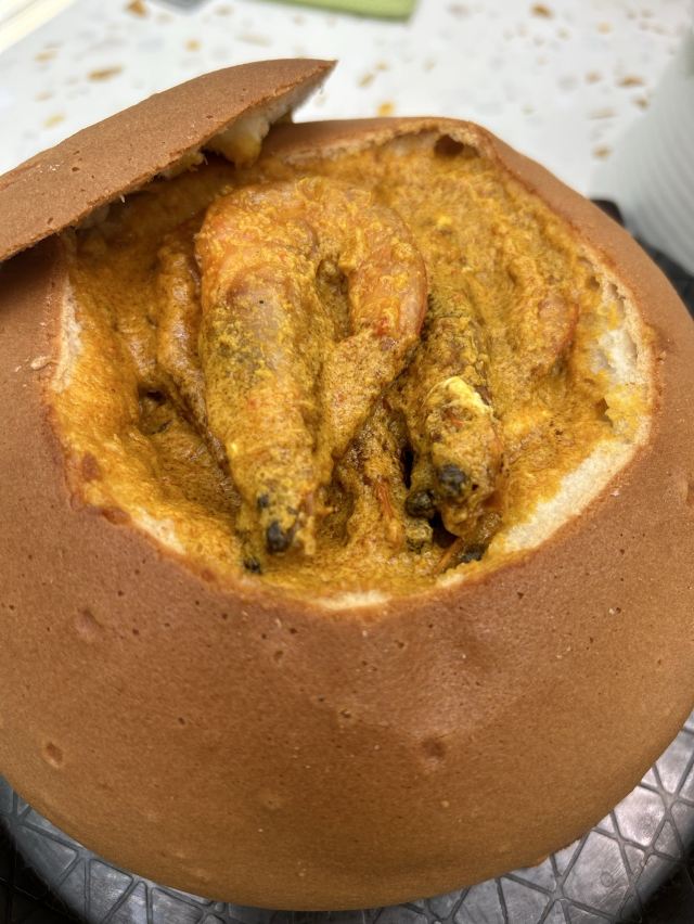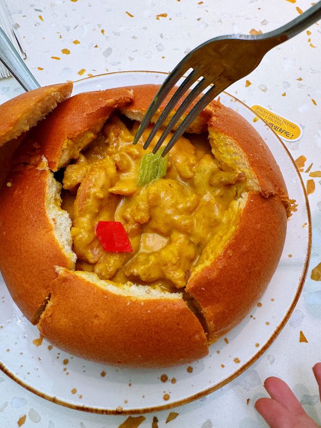 YoYo_9H7Y6C3X💚环境: 网红店,环境布置自然是没得说,还有帐篷可以让顾客拍照打卡,要说不足主要是二楼空调不给力,实在是太热了。 🧡没能买到团购套餐,因为人不多,偷懒照着二人餐点的 「糖醋脆明虾」明虾很大,肉很弹性,酸甜开胃,关键是虾头中还有虾黄,着实惊喜。 「咖喱面包鸡」面包外面一层是酥皮的,里面松软,伴着奶味咖喱很好吃,全是鸡肉块,没有骨头。 「XO酱爆白玉菇虾仁」白玉菇经过油炸后有点干煸口感,加上xo酱和虾仁鲜美但有点偏咸。 「快乐星球」「正山小种奶茶」「鲜果浮冰」这几款都是即有颜值,口味也很不错的饮料,都推荐尝试。 ❤️服务: 服务员(忘记问姓名了)很上心,听我们说热,主动给了我们扇子,还送了「冻柠茶」(很好喝),快乐星球的泡泡因为视频没拍到,她也很耐心的帮我再弄了一次。很一次愉快的用餐体验~