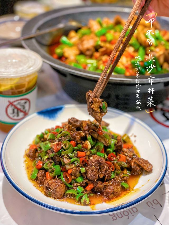蛋花食游记呷不穷·长沙市井菜|宝藏湘菜一观,随便呷,呷不穷 姐妹们,又发现了一家宝藏湘菜,今天带你们来看看哦~“呷”在长沙话里是“吃”的意思,那么这个店的宗旨就是让你随便吃,吃不穷啦~ 味道特别好,据说是文和友的厨师团队哦!好吃不贵,味道也很地道~可谓是湘菜性价比天花板! 金钱蛋,鸡蛋🥚过油炸了道,外皮金黄带点儿微脆,微辣微麻的酱料好入味~土鸡蛋也很鲜美,不愧是招牌菜呢! 香辣紫苏牛蛙,好大一份量很大呢,牛蛙肉好嫩~紫苏还有去寒理气的功效,这道养生牛蛙不得不吃呀! 擂椒皮蛋,这道是很经典的湘菜,几乎我去每家湘菜店都会点~呷不穷家的味道很正宗,辣椒是产自湖南的,所以就很原汁原味,够辣够劲儿~把辣味都擂出来,渗透到皮蛋里去,这滋味,不要太开胃哦!就光这菜就能多吃一碗饭~ 永州血鸭,这道菜上过舌尖上的中国哒!湖南名菜,香辣可口,特别下饭~ 手打茉莉绿柠檬水🍋,吃辣辣的菜就必须配冰爽的饮料,柠檬水很解辣,还有茉莉的清香缭绕,舒缓了整个辣意~