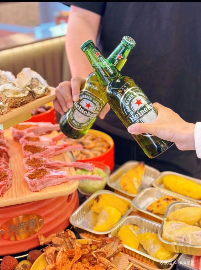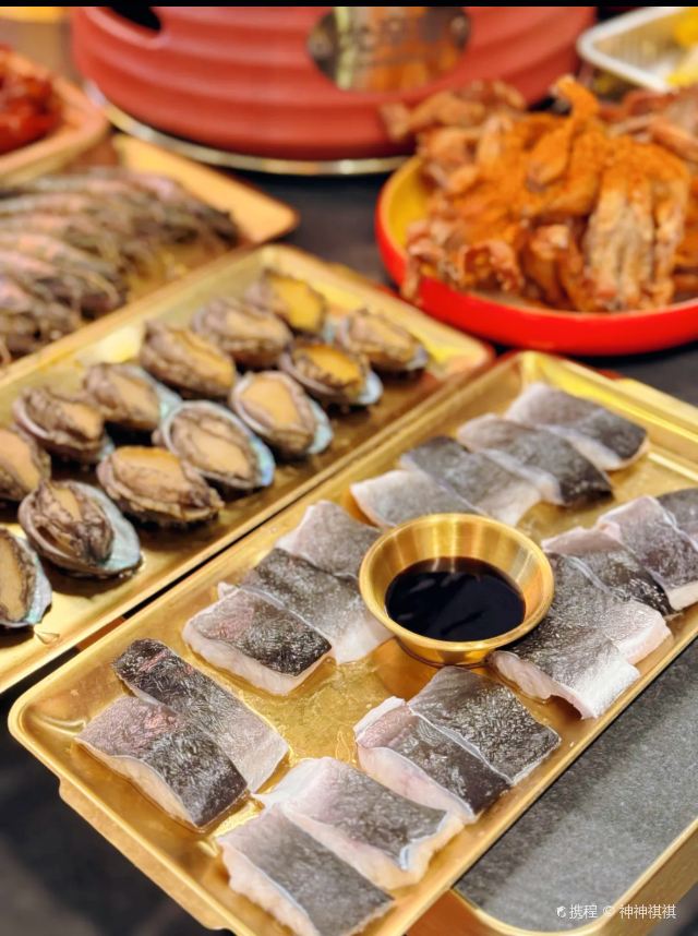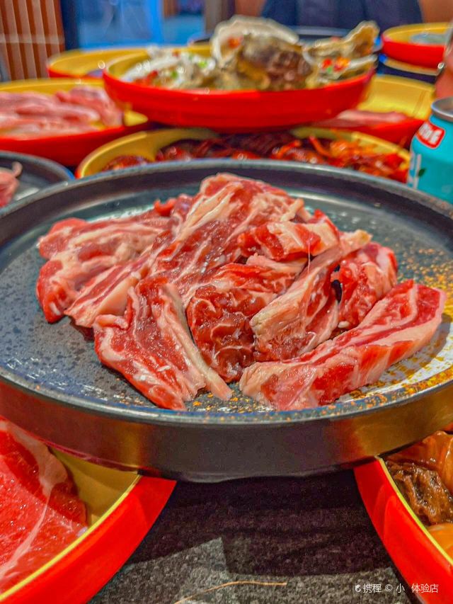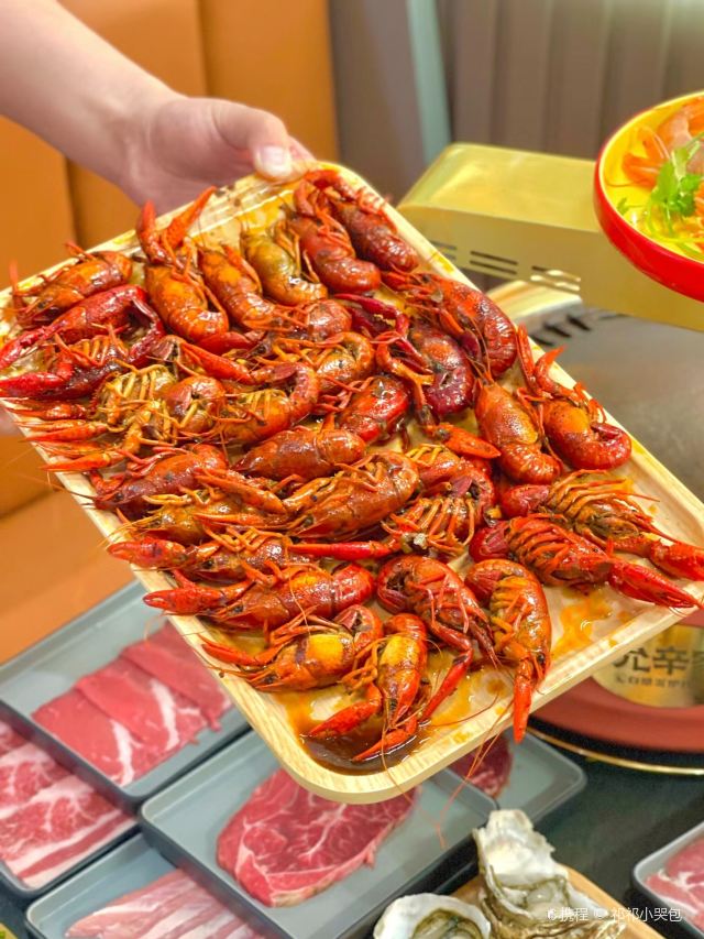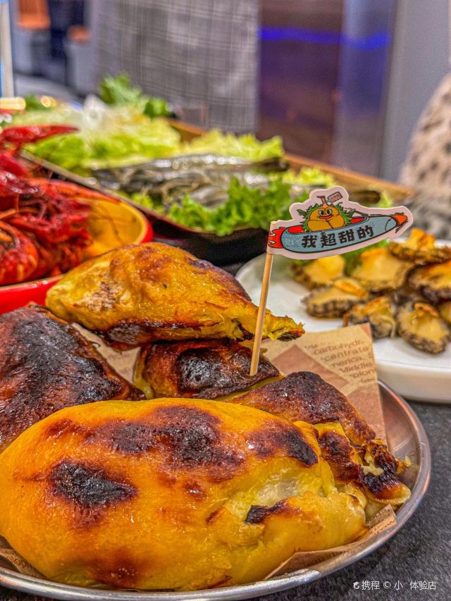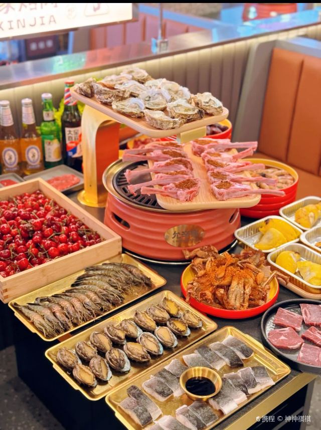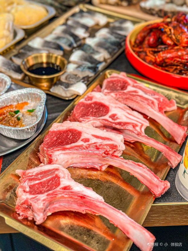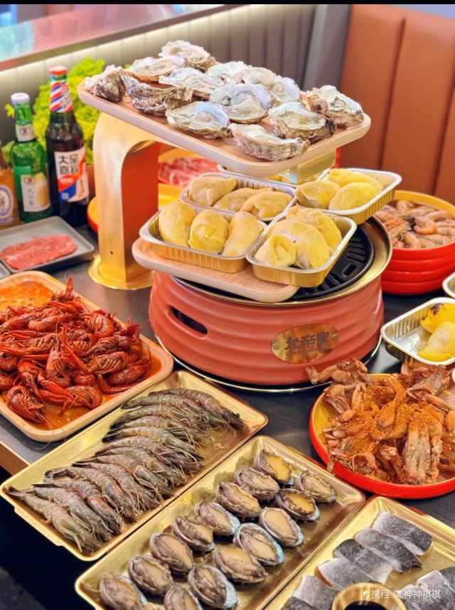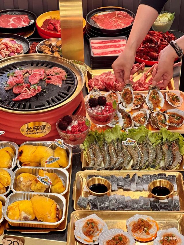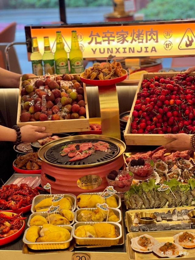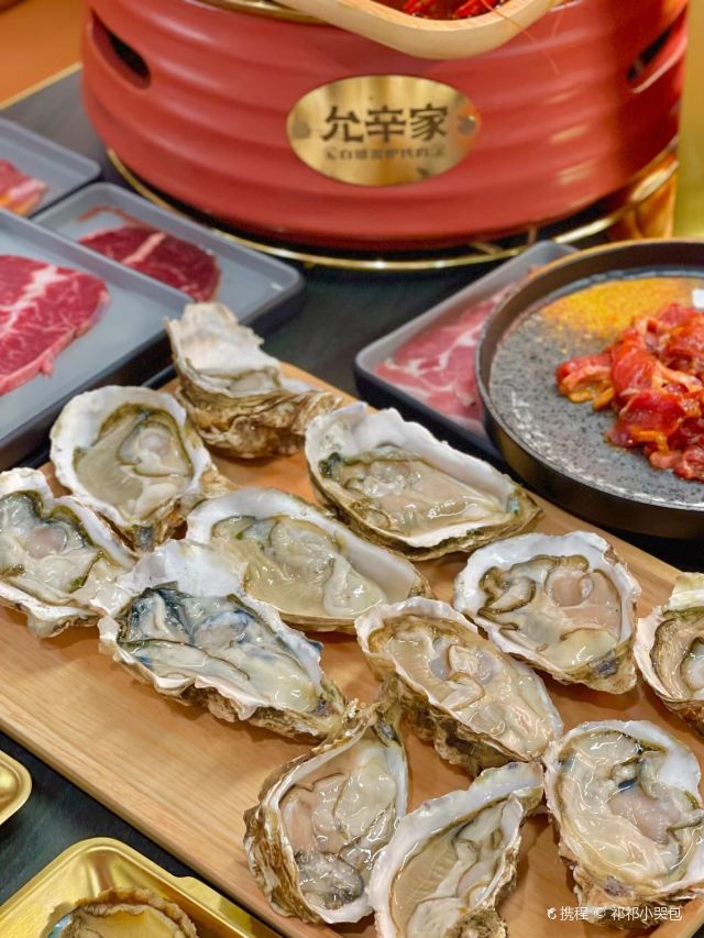 祁祁小哭包美食盛宴一一允辛家自助泥炉烤 最近的热门泥炉自助一一允辛家。菜品丰富多样,让人目不暇接。感觉都吃不过来啦 一进店,就能感受到浓郁的烤肉氛围。店内采用泥炉烤制,独特的烤制方式让肉质更加鲜嫩多汁。 首先,必须要尝试的是他们家的招牌菜一-烤羊排。羊排烤得外焦里嫩,咬上一口,香气四溢。还有烤鳗鱼,鱼肉鲜嫩,入口即化。 烤鲍鱼也非常不错,口感鲜美,让人回味无穷。除了烤肉,这里的海鲜也不容错过。烤生蚝新鲜肥美,蒜香十足。炸牛蛙外酥里嫩,味道十分鲜美。 店里的水果也非常丰富,大樱桃、荔枝、杨梅等应有尽有,而且都是畅吃,让你一次吃个够。此外,他们家还有各种安格斯牛肉、牛仔骨等,品质上乘,口感极佳。 允辛家自助泥炉烤是一家非常值得推荐的餐厅。无论是菜品的品质还是种类,都能满足不同人的口味需求。如果你是烤肉爱好者,一定要来尝试一下!