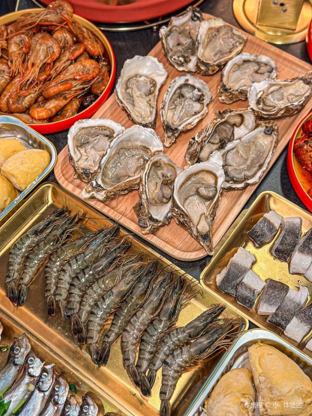 榴莲脑袋看过来!畅吃烤肉还有榴莲 你没听错就是100多! 不仅可以吃到高质量的烤肉 还有烤榴莲活sha鳗鱼现切牛肉羊排 各种鲍鱼大虾小龙虾☑生蚝 水果都是新鲜荔枝Q樱桃还有杨梅 各种酒水饮料更是不在话下 这价格不吃真的对不起老板的豪气 👍推荐菜:新鲜鳗鱼 ❤️推荐理由: 新鲜鳗鱼一吃就能吃出来 他们家的鳗鱼肉质q弹 真的是新鲜到没朋友 在炭火上烤到滋滋作响焦焦黄黄就可以吃了 吃在嘴里相当柔嫩 蘸点鳗鱼汁真的yyds 👍推荐菜:烤肉🍖烤羊排 ❤️推荐理由: 他们家的肉肉不仅品种丰富,而且品质相当高 烤牛肉,烤羊肉,每种都鲜美可口 外面焦焦香香的,里面还有汁水 对了,来到这里推荐一定别错过烤榴莲 每块榴莲都相当肥美 真的是香气四溢呀喜欢榴莲的别错过哦 这里还有各种各样的海鲜 每种都相当的鲜活 真的是吃一次让人流连忘返 无论是朋友聚餐还是家庭聚会都很推荐 #海鲜自助餐 #排队也要吃的自助餐 #安利这家宝藏餐厅 #烤肉 #夏日美食探店