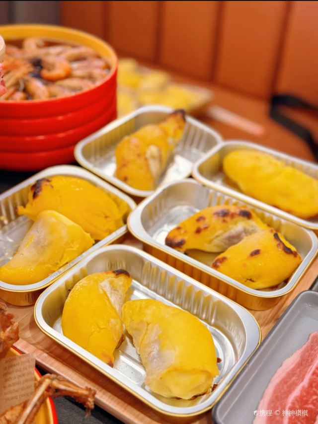 小🌰体验店||家人们呐,这家的烤榴莲真的太香了一口气就炫了四只! 在允辛家,你可以尽情享受各种烤的乐趣。选上自己喜欢的食材,放在烤盘上慢慢烤制,看着食物在火上慢慢变色、散发出诱人的香气,那种满足感简直无法用言语来形容。允辛家还有各种精致的小食和甜品。你可以在享受烤肉的同时,享受品类丰富的甜品与饮品。 以下是这些菜品的口感描述: 烤榴莲 经过烤制,榴莲的口感会变得更加香甜软糯,奶味也会更足。有些人喜欢烤榴莲的外皮有点焦焦的感觉,认为这样更好吃。 辣卤小龙虾 通常具有甜辣味,不是那种辣心的辣,而是回味清甜的味道。小龙虾的肉质紧实,虾壳柔软,容易剥开。 烤羊排 外皮金黄酥脆,内部肉质鲜嫩多汁,口感鲜香。如果腌制得当,羊排还会入味,吃起来更加美味。 炸牛蛙 牛蛙经过油炸后,外皮会变得酥脆,内部的肉质则保持嫩滑。可以根据个人口味搭配不同的调料,如椒盐、辣椒粉等,增加口感的层次感。 餐厅:允辛家·自助泥炉烤肉(申滨路) 地址:申滨路960号5幢一层1F-62号 #我的深夜食堂 #当地才能吃到的美食 #人气烤肉 #网红美食大盘点 #吃一顿海鲜大餐