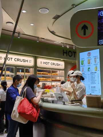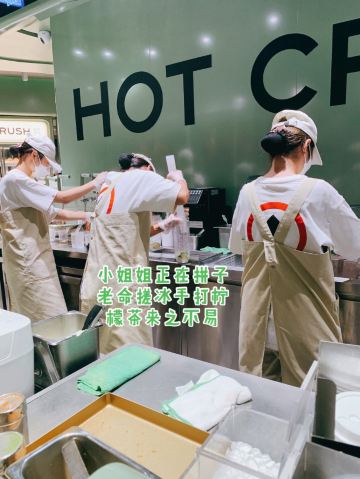 趁着国庆假期总算是打卡了一回美罗城的趁热集合[得意] 人气还是旺到爆棚[礼花][礼花][礼花][礼花][礼花] [薄荷]环境: 店铺明明看着和浦东那家差不了多少,只是外面排队的过道小气了一点,显得那么局促,还是公用面积小了点啊! [服务铃]服务: 本以为要排很长时间,没成想店内的小姐姐小哥哥们手脚麻利,老长的队伍还是速速的就排到了,服务上感受到了全程的热情与贴心[强] 「深烘蛋挞」打卡收藏送的,拿到手还是热的,到家么立马成了某人盘中餐[调皮] 「加州提子司康」深夜12点抢的一块钱司康成了母亲大人借花献佛的工具,进了陌陌人的嘴,好在我以前浦东那家吃过[调皮] 「空气卷」是真心的好吃😋量也真心的大,别以为是空气的名字,里面就真空气啦,还是实打实的一个卷啊,还很大,当顿早餐搓搓有余[调皮] 「手打爆爽柠檬茶」现场等茶时,看着现场制作,小姐姐那拼子老命戳冰的力道没有地动山遥么也有使出了浑身的吃奶劲了,一杯手打爆爽柠檬茶来之不易啊,味道也很清新爽口呢[调皮] 以上~ (PS:坐等第三家开业[悠闲])