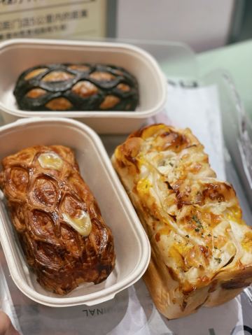 逛街的时候看到很多人都拿着这家店的袋子,就想来尝个鲜。人气还是很高的,门口会有小黑板告示本店热销款排行榜,根据这个做参考,我挑选了自己喜欢的,事实证明绝不踩雷。特别中意开心果酱爆黑可颂,外表黑黑酷酷的可颂,馅料丰富,口感超好,不甜腻,很好吃,还会回购。惠灵顿也不错,就是馅料不太足。