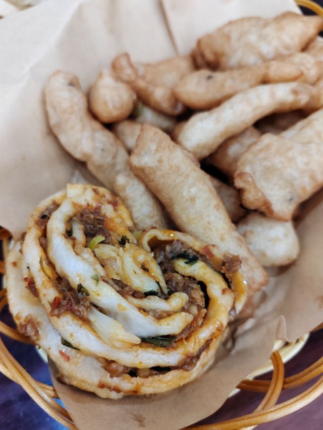 北陌陌北中午在附近看到的店!从来没吃过胡辣汤~很好奇的进来吃了!是一家新店~很干净~服务员小姐姐很奈斯~会给我们推荐好吃的~说和河南当地做的一样一样~「胡辣汤」我们点的牛肉胡辣汤~里面有丢丢粉丝,牛肉比想的要多!应该是放的胡椒吧~很好喝~虽然第一次吃~也觉得很不错!还有羊肉味的下次可以再来试试「羊肉水煎包」好好吃!对于喜欢粉丝的人来说~无法抗拒里面有丢丢羊肉~「小油条」没吃过这样的~吃起来好香~酥酥脆脆的!喜欢!「油饼」这个服务员小姐姐强推的油饼~真的很不错!好香!我们还拿来蘸汤也非常不错!不是很油~总体来说很不错~吃个早饭吃个宵夜感觉都不错~冲吧!