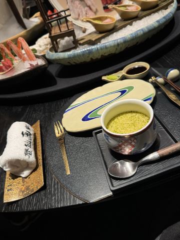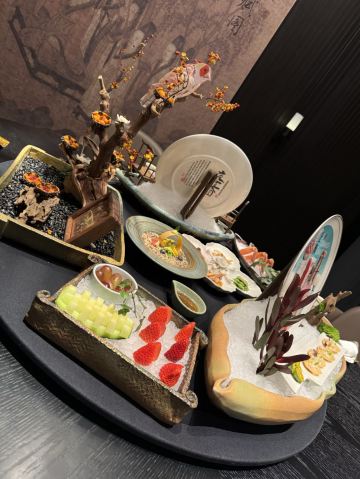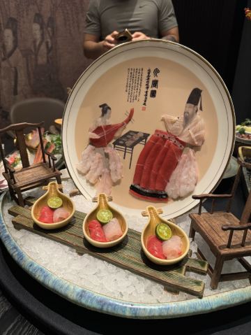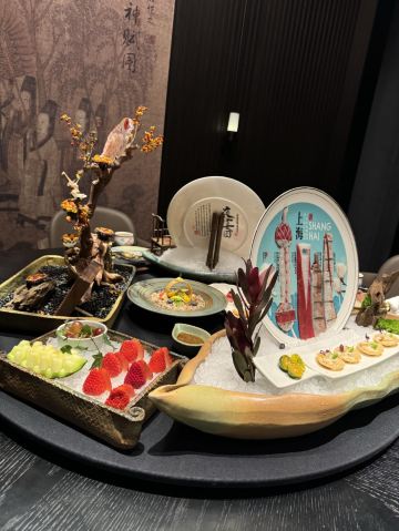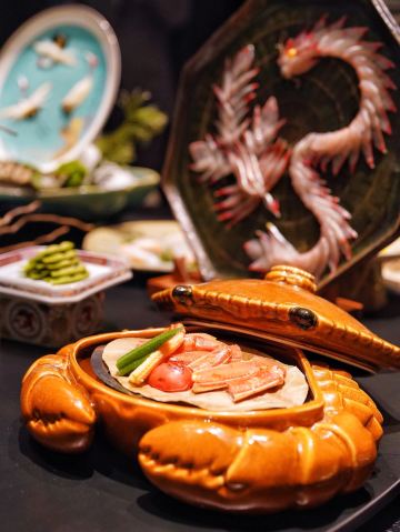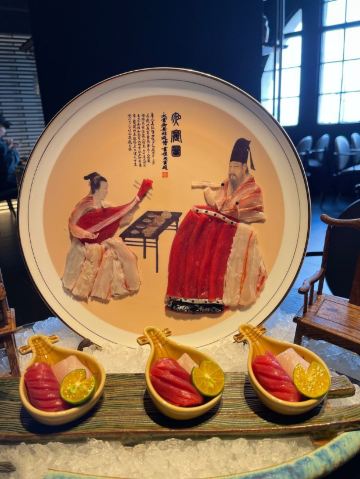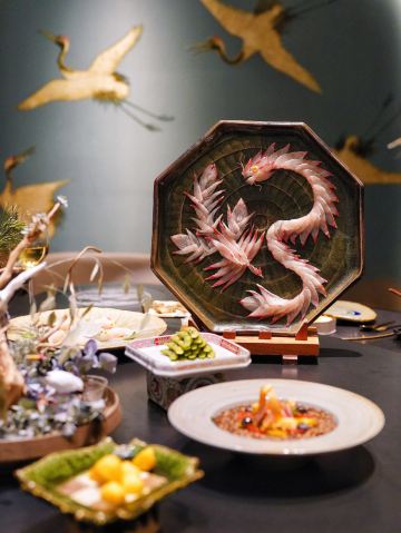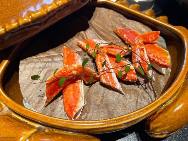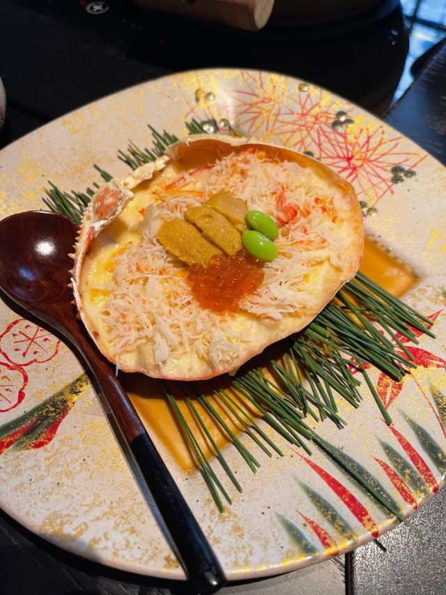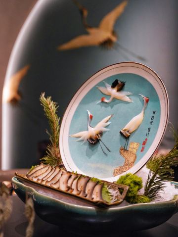 吃过蟹道和蟹神,最后迎来蟹仙画宴Crab&painting的创世巅峰,千年之前的传世名画竟然也可以吃❓来外滩五号踏上一场时空之旅,与国之瑰宝撞了个满怀吧💫 走廊上引人瞩目的神来之笔,汲取名画之精粹的主题包厢,卷轴舞台上翩翩起舞的仕女,一陈一设都细节感满分💯 独创的名画美学菜更是一秒刷新我的认知,登峰造极的完美复刻,为盘中餐注入艺术魂,仿佛从古圣先贤的笔下活过来了‼️ 🌟瑞鹤图🌟 以枪鱿鱼制成仙鹤羽毛,以黑金鲍制作尾羽,精雕细琢的程度简直令我叹为观止,看来品味艺术文化的最高境界,并不是静静观赏,而是把它吃进肚子里 ✨鱼藻图✨ 栩栩如生的画中鱼,浓淡有致虚实交替,洁白透亮的枪鱿鱼作为鱼身,若隐若现的金枪鱼呼之欲出,每一口都鲜嫩指数爆表, 还携带着年年有“鱼”的美好寓意🐟 一蟹多吃的招牌活蟹料理岂能错过👇 🥗雪蟹蟹肉色拉🥗 姹紫嫣红的缤纷色拉,犹如满园春色关不住,如丝如缕的蟹肉暗藏其中,搭配新鲜果蔬和藜麦,每一口都把层次感拉满了📈 🦀️雪蟹蒸笼🦀️ 想品尝原汁原味的蟹香,那么新鲜指数MAX的雪蟹蒸笼一定能满足你!刚好一口的蟹肉块,最大程度保留鲜香顺滑的美妙滋味 另外还有温火炙烤的活拆雪蟹腿,入口即化的雪蟹茶碗蒸,再挑剔的味蕾都被轻松拿捏