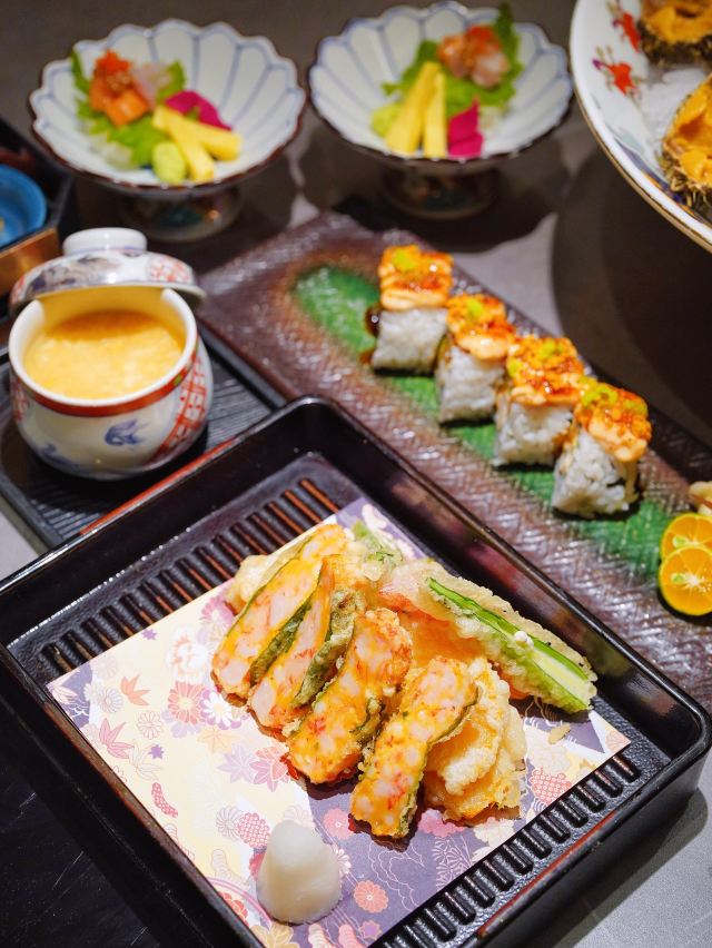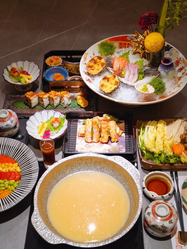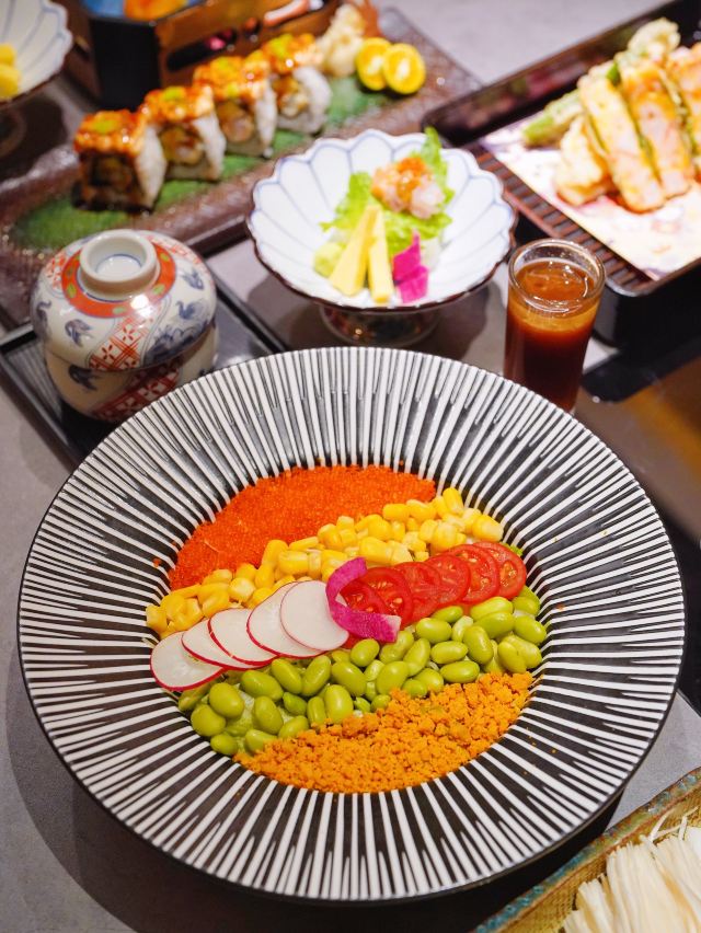 吃饭就别叫我了吃海胆已经不足为奇,海胆九吃才够到位,阳康出门第一站,来把离家出走的味觉找回来💃🕺 胆道,你是懂海胆的!不仅一次就能解锁海胆的N种吃法,还可以解放双手拯救懒人,赶紧抢“鲜”码住🤗 🌈海胆沙拉🥗 五颜六色的缤纷摆盘,光颜值就已经打满分💯浇入酱汁以后上下搅拌均匀,清新爽口又开胃~ 🍣海胆刺身三拼🍣 颗颗鲜活的黄金海胆,轻轻一抿便在口中化开,还有三文鱼刺身和黄鰤鱼剌身,真是大写的满足感👍 🍤海胆天妇罗🍤 虽然一向对天妇罗不感冒,但还是被胆道的海胆天妇罗给惊艳到了!融入虾胶丰富口感,外脆里嫩yyds👏 🍲海胆火锅料理🍲 热气腾腾的锅物料理,我想应该没有人不喜欢吧❓涮完蔬菜以后还可以接着煮泡饭,阳康表示立马回血❣️ 另外还有迷你海胆饭、海胆芝士卷和海胆茶碗蒸,真是寒冷冬日里的小确幸呢❤️