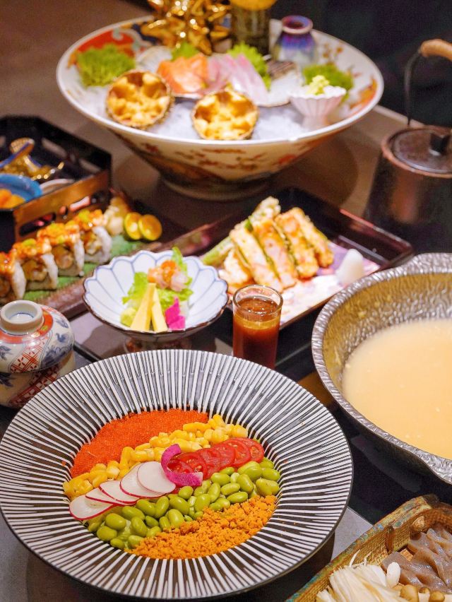 吃海胆已经不足为奇,海胆九吃才够到位,阳康出门第一站,来把离家出走的味觉找回来💃🕺 胆道,你是懂海胆的!不仅一次就能解锁海胆的N种吃法,还可以解放双手拯救懒人,赶紧抢“鲜”码住🤗 🌈海胆沙拉🥗 五颜六色的缤纷摆盘,光颜值就已经打满分💯浇入酱汁以后上下搅拌均匀,清新爽口又开胃~ 🍣海胆刺身三拼🍣 颗颗鲜活的黄金海胆,轻轻一抿便在口中化开,还有三文鱼刺身和黄鰤鱼剌身,真是大写的满足感👍 🍤海胆天妇罗🍤 虽然一向对天妇罗不感冒,但还是被胆道的海胆天妇罗给惊艳到了!融入虾胶丰富口感,外脆里嫩yyds👏 🍲海胆火锅料理🍲 热气腾腾的锅物料理,我想应该没有人不喜欢吧❓涮完蔬菜以后还可以接着煮泡饭,阳康表示立马回血❣️ 另外还有迷你海胆饭、海胆芝士卷和海胆茶碗蒸,真是寒冷冬日里的小确幸呢❤️