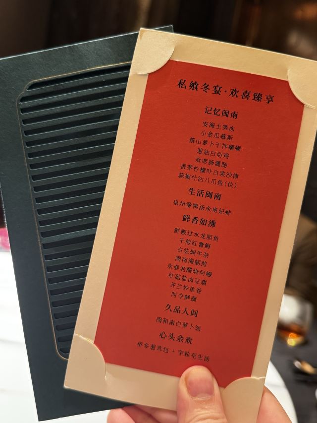 年菜这件事上~福建人遥遥领先,临近春节!体内的馋虫觉醒,正巧赶上在我美食排行榜封神的匠心闽菜——闵和南举办“佛跳墙”节,马上带上爸妈来一吃一个不吱声 至臻佛跳墙是一人一盅的精致,海参/鲍鱼/鱼翅/花胶/蹄筋/干贝等经典珍飨入罐,浓缩成世间难得美味凝聚力,高汤底更是鲜而不腻稠而不粘的水准体现,看到家人被美食打动不自觉的笑容,一年的辛苦都是值得,最后感叹:份量真的足啊!! 红糟醋猪脚真的软糯不失嚼劲又醇香微酸醇香很入味👍,应该是酒糟或者红米酒煮的,色泽仿佛红宝石的油亮红艳,点缀上酥软的莲子预示来年好运连连吧 鸡油大黄鱼入口鱼肉细腻紧实,妥妥的深海野生大黄鱼,搭配经典鸡油增色增香,主打一个年年有余啦~ 白玉萝卜丝浸小蚌,新鲜剔透的蚌肉也是福建特色,这次是是加入冬日滋补的萝卜丝,和蚌肉的弹嫩鲜甜相辅相成 香油牛肉饭是师傅现场堂炒的,用的牛仔骨肉粒,这份热热闹闹香喷喷的碳水很乐意吃下~还有招牌点心吃侨香葱茸包也是谁吃谁爱的治愈! 🥢“佛跳墙”节:即日起👉2🈷️ 12日