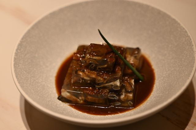 哎呦喂_是谁这是一家2024米其林指南入选餐厅,在苏河湾万象天地的一家福建菜餐厅。性价比非常高,服务非常好,环境非常棒,家人团聚或者商务宴请都非常适合。 永春老醋烧河鳗:这道菜特别让人回味,河鳗采用醋烧的做法,闻起来有浓郁的醋香味,改过花刀的鳗鱼更佳入味,吃起来鳗鱼口感特别鲜嫩,每一口都特别肥美。 干煎红膏蟹🦀:红膏鲟蟹经过干煎后,蟹肉保留了原汁原味,每一口蟹肉都能感受到新鲜和甘甜,一口咬下去,鲜美的汁水在口中爆发。 侨乡葱茸包:包包的外皮很松软,内部的馅料很鲜甜,甜度也刚好,完全不会觉得腻。1个包包根本不够吃,一定要吃2个才能解馋。