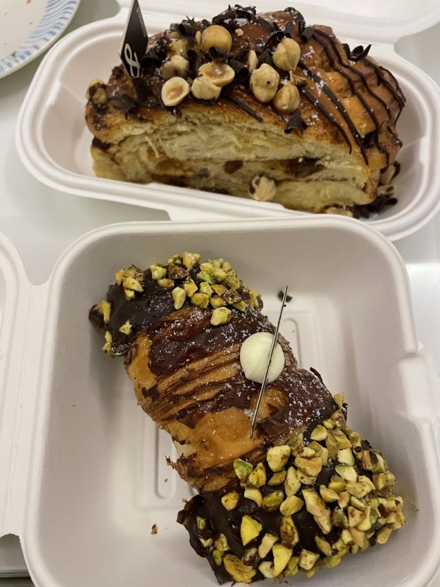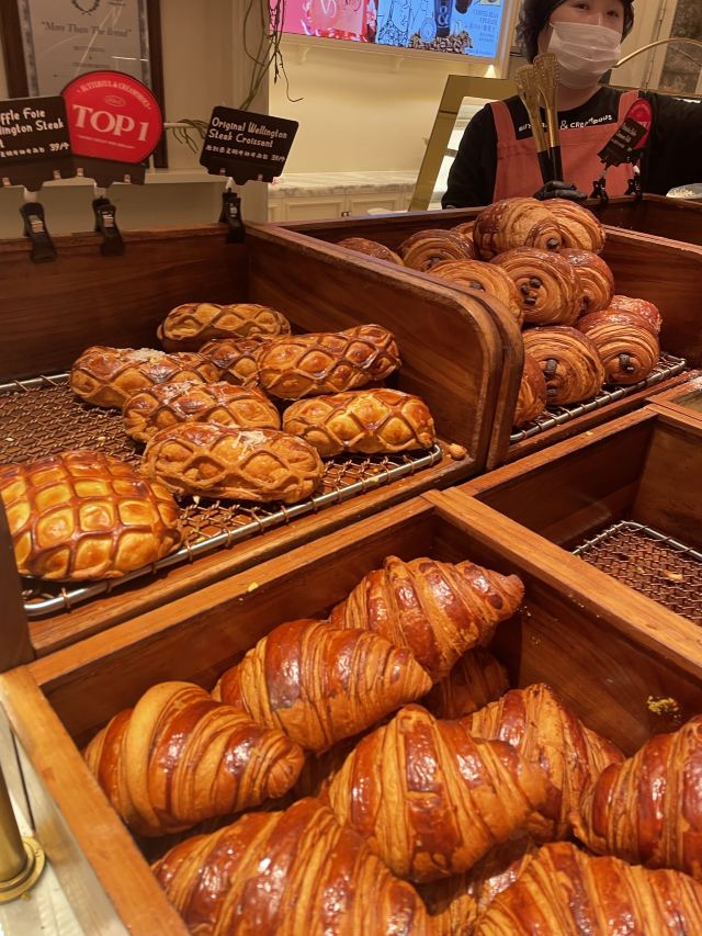 今日魔都小食 B&C 硕大一个袋子必须多买一点犒劳一下自己 |法式榛子巧克力牛角酥^|法式黄油红豆牛角包^|法式焦糖焗烤厚塔^都是不错的选择哦