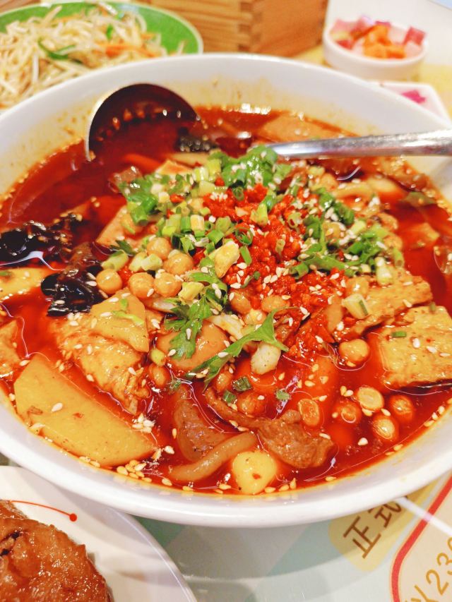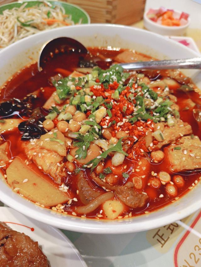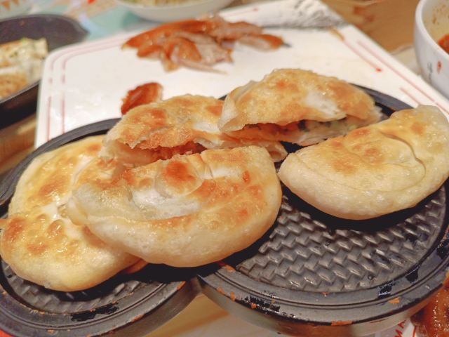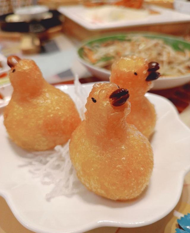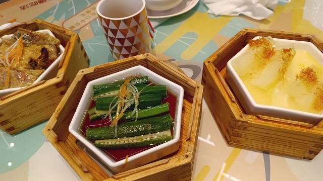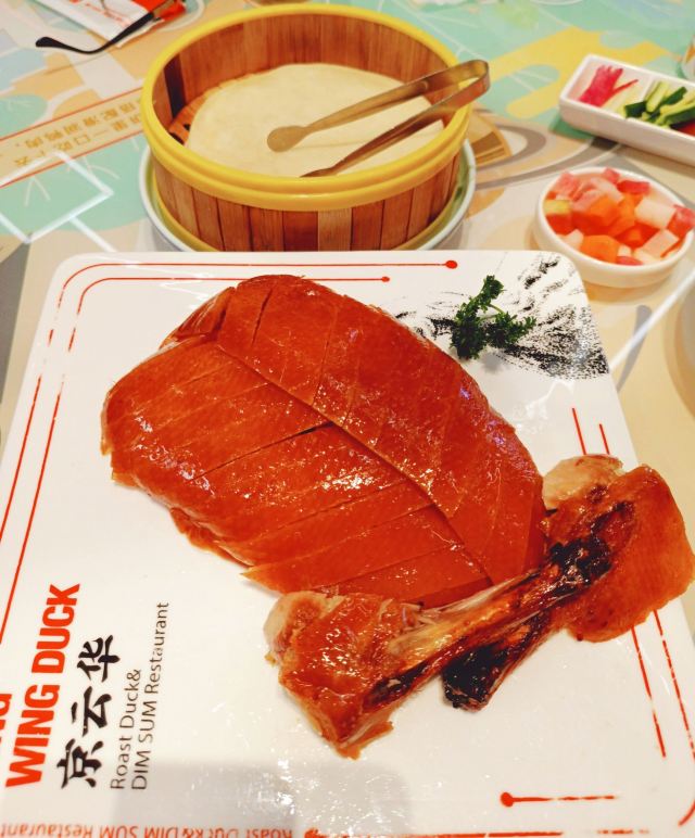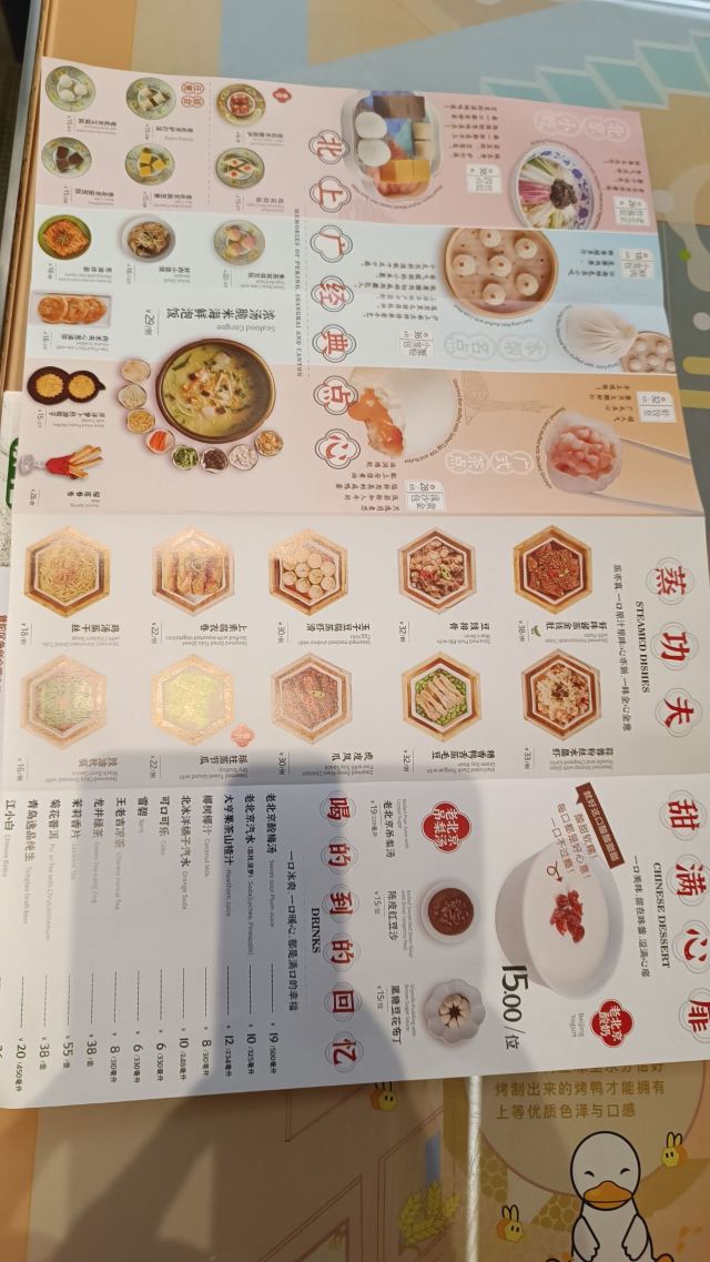 祝大家端午安康!和家人聚餐选在离老人家近点的长风大悦城。生意不错,不能预定,没有包房,只有两个八人的桌子,爸妈11点不到就去了,店里已经坐了三成客人了。我点了它家的招牌枣香烤鸭一只,鸭架椒盐,其它都是点的蒸点,又另外点了一份成都冒菜。味道都不错,烤鸭性价比高,单点一只只要¥168,虽然很忙但是依旧服务很好,特别是服务员小董,很细心说话也温柔。不过还是要提一下,铺餐具时还是要轻拿轻放,我们在聊天,就听到乒乒乓乓的声音,这样会吵到客人的。