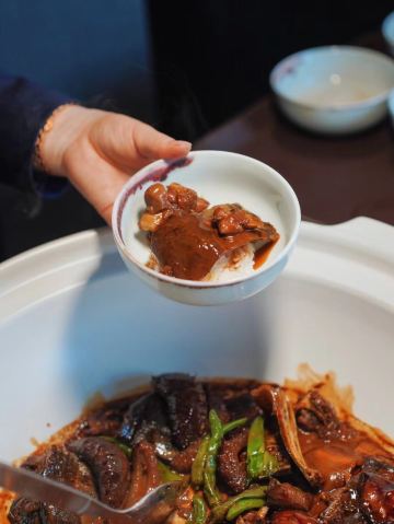 大白饮食天下云起前滩,望庐赣味 前滩平凝望,结庐人世间。 坐落于浦东前滩的明珠, 毗邻香格里拉大酒店, “凝望”前滩太古里, 与风靡百年的老佛爷并肩, 品轻奢美馔,赏前滩美景; 除了无辣不欢的酣畅, 还有瓷韵与时尚的创新融合 经历江西菜不同寻常的风雅。 前滩难得一见的精细江西菜,可宴请,可小酌,丰俭由人,有10-12 人大包房,也有4-6 人小包房,大厅也很漂亮,由景德镇瓷艺作品,爱马仕橙色和古驰绿色,很有品位。 推荐思几个我特别中意的菜肴 望庐特色大鱼头, 【口味】浓郁,鱼头肉质肥美,来自鄱阳湖畔,富有胶质感,里面辅料也丰富了,下饭神器。 宜春老表情怀鸡汤,36 个月以上老鸡,汤头清美,更有丰富的枸杞,当归,参。鸡肉也很鲜嫩可口。 招牌黄甲鱼佛跳墙,甲鱼性感肥美,皮质富有胶原蛋白,富甲一方既视感,来者必食,每桌必点,上菜很有仪式感。特别红火热闹讨喜,因为都是好口彩,感觉生意兴隆。“珍珠玛瑙金铺路,翡翠珊瑚银作床”,横批“富甲一方” 最后江西南昌炒赣粉,完美收官了。
