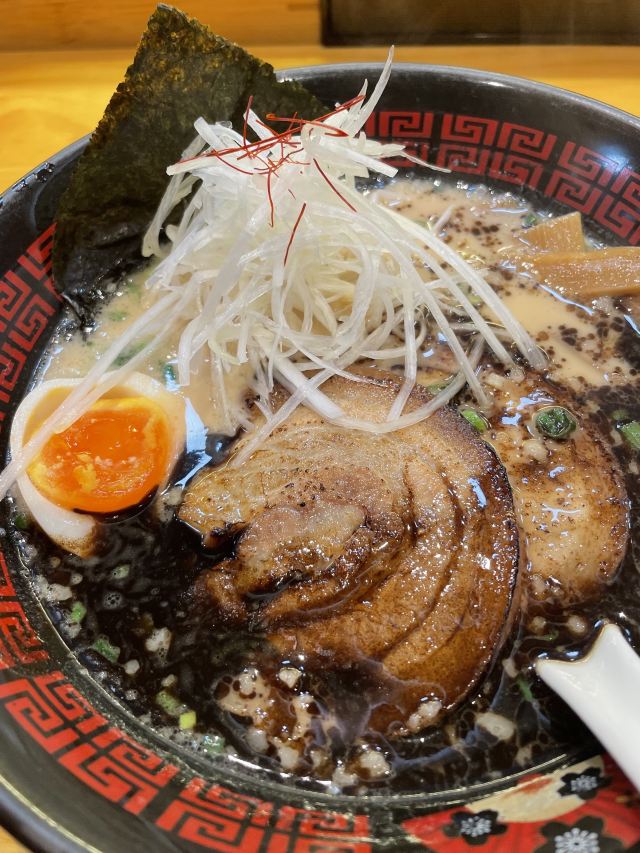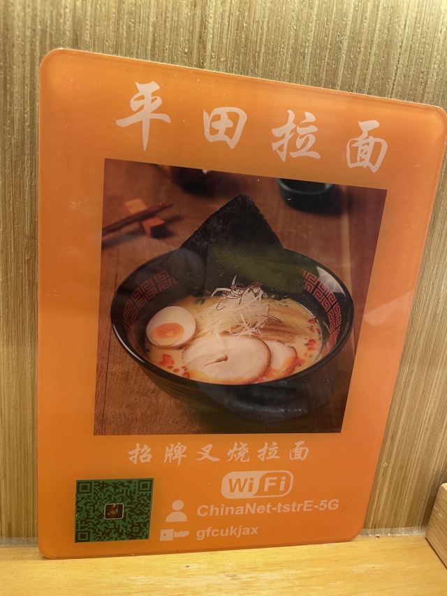 平田拉面(香花桥店) 来吃面🍜 招牌黑蒜豚骨拉面 小伙伴推荐说平田拉面这款最好吃,吃过了平田二郎拉面,这次来吃吃看黑蒜豚骨拉面。口味咸淡辣度可选,面软硬也可选,免费加面,免葱也可选。汤底骨汤味浓,黑蒜挺香滴,面条也不错,肉肉肥瘦相间,半个溏心蛋。 🍵乌龙茶 店内有免费柠檬水 门口机器上自助点单,上面速度挺快滴,服务态度挺好滴。